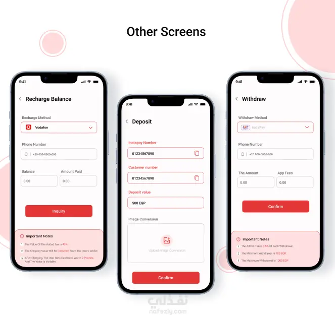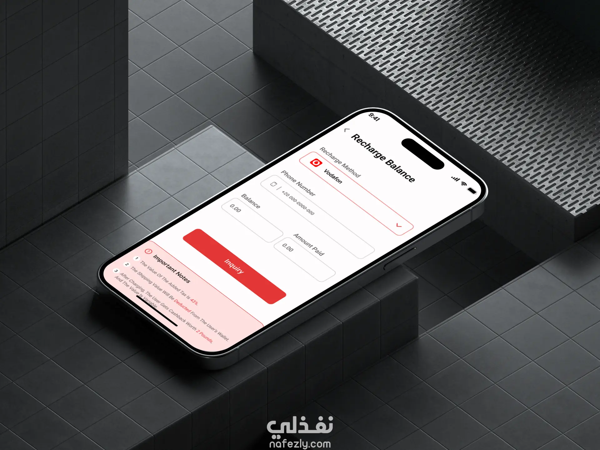 تصميم تجربة مستخدم وواجهات تطبيق دفع إلكتروني (فواتير – شحن رصيد)
