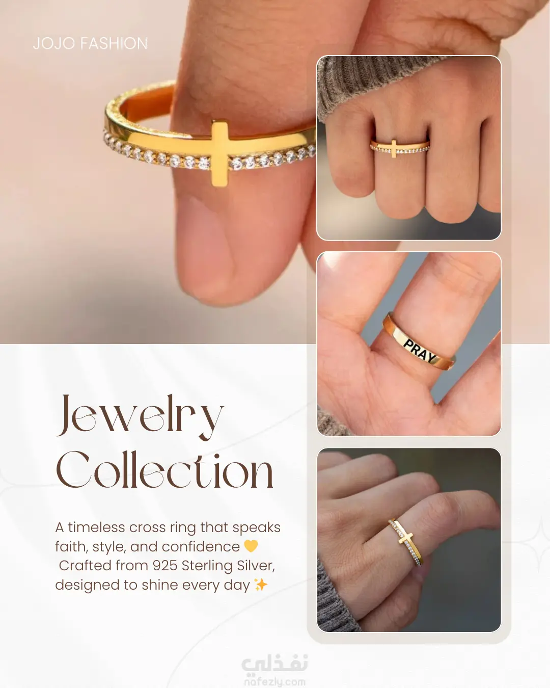 تصميم بوست فيسبوك احترافي لبراند مجوهرات بأسلوب Elegant & Luxury يركز على إبراز المنتج وبناء هوية قوية للبراند.