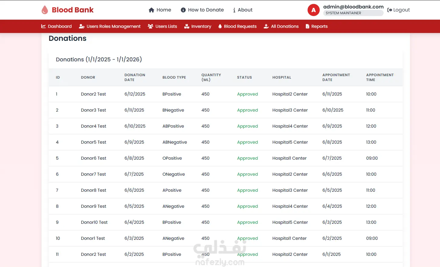 نظام تسجيل وجدولة مواعيد للمتبرعين.