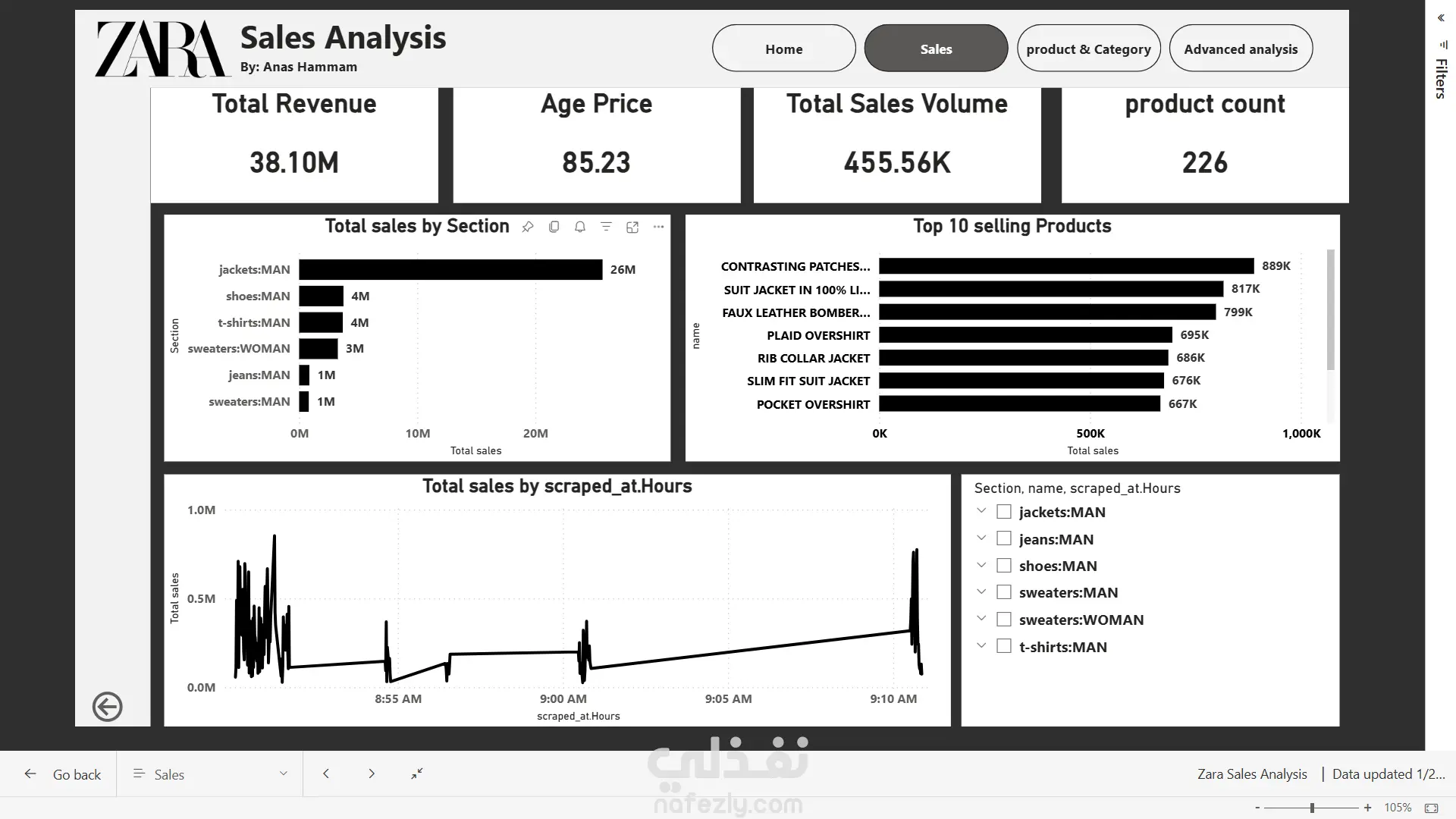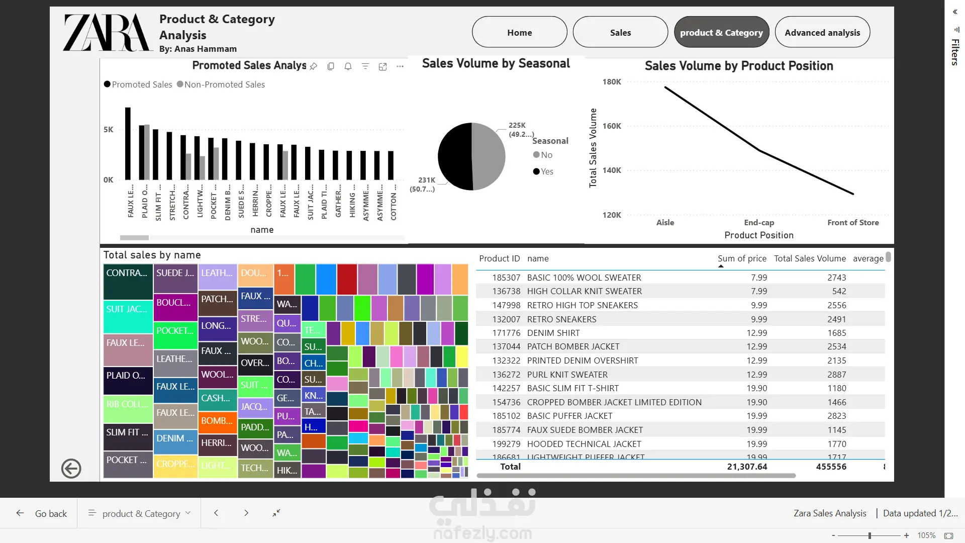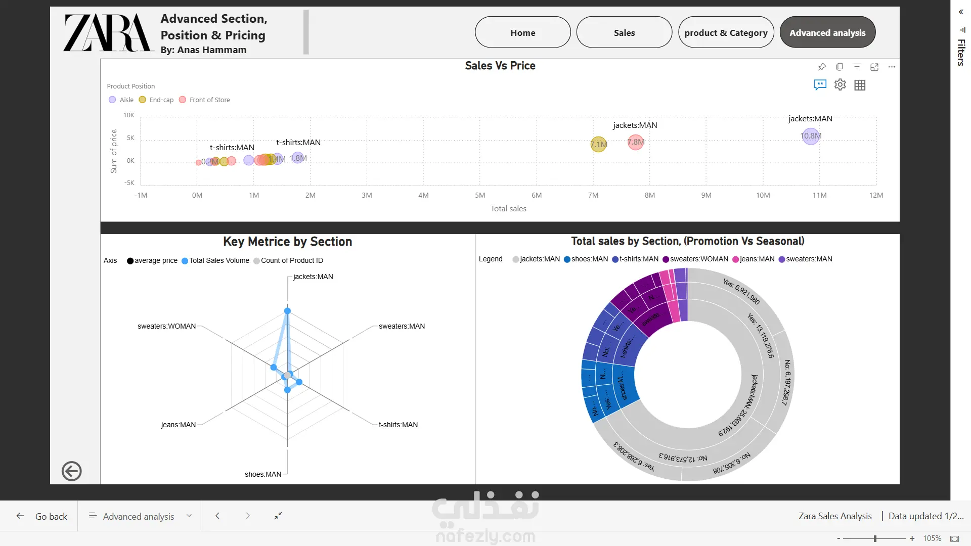 مشروع تحليل بيانات متقدم | ذكاء المبيعات – ZARA From Raw Data to Business Decisions كيف يمكن للبيانات أن تعيد تشكيل قرارات التسعير، عرض المنتجات داخل المتجر، والتخطيط الموسمي؟ بهذا السؤال بدأت العمل على مشروع تحليل مبيعات ZARA باستخدام Power BI، حيث لم يكن الهدف عرض أرقام أو Charts فقط، بل تحويل البيانات إلى قصة تدعم قرارات بيزنس حقيقية وقابلة للتنفيذ. 🔍 What Was Analyzed? قمت بتحليل البيانات من عدة زوايا، أهمها: ●إجمالي الإيرادات وحجم المبيعات ●أداء الأقسام المختلفة (Men / Women) ●أفضل المنتجات مبيعًا ●العلاقة بين السعر والمبيعات ●تأثير مكان عرض المنتج داخل المتجر ●الفرق بين المبيعات الترويجية والموسمية 📊 Key Insights & Business Story 📌 Men Jackets هي المحرك الأساسي للإيرادات أكثر من 26M من إجمالي المبيعات جاءت من جاكيتات الرجالي، مما يؤكد أنها Core Product يجب التركيز عليه في استراتيجيات التسعير والترويج. 📌 السعر المتوسط يحقق أعلى قيمة التحليل أوضح أن المنتجات متوسطة السعر تحقق أفضل توازن بين حجم المبيعات والإيرادات، وهو ما يعكس مفهوم Value for Money بدلًا من الاعتماد على السعر المنخفض فقط. 📌 مكان المنتج داخل المتجر يصنع فرقًا حقيقيًا المنتجات المعروضة في Aisle حققت أعلى Sales Volume مقارنة بـ End-cap و Front of Store، ما يوضح أن إعادة ترتيب المنتجات يمكن أن ترفع المبيعات بدون أي تكلفة إضافية. 📌 العروض الترويجية فعالة… ولكن بحساب المنتجات المروّج لها تحقق مبيعات أعلى، لكن الاعتماد الزائد على الخصومات قد يؤثر سلبًا على القيمة المدركة للعلامة التجارية. 📌 الموسمية عنصر مؤثر جدًا حوالي 50% من المبيعات مرتبطة بالمواسم، مما يبرز أهمية التخطيط الموسمي الذكي للمخزون والمنتجات. 🧠 Business Value هذا المشروع يوضح كيف يمكن لـ Data Analytics أن تدعم: ✔️ قرارات التسعير ✔️ تحسين عرض المنتجات داخل المتجر ✔️ إدارة المخزون بكفاءة ✔️ زيادة الإيرادات بدون زيادة التكاليف 🛠 Tools Used Excel power query Power BI Data Modeling DAX Business-Oriented Visualizations