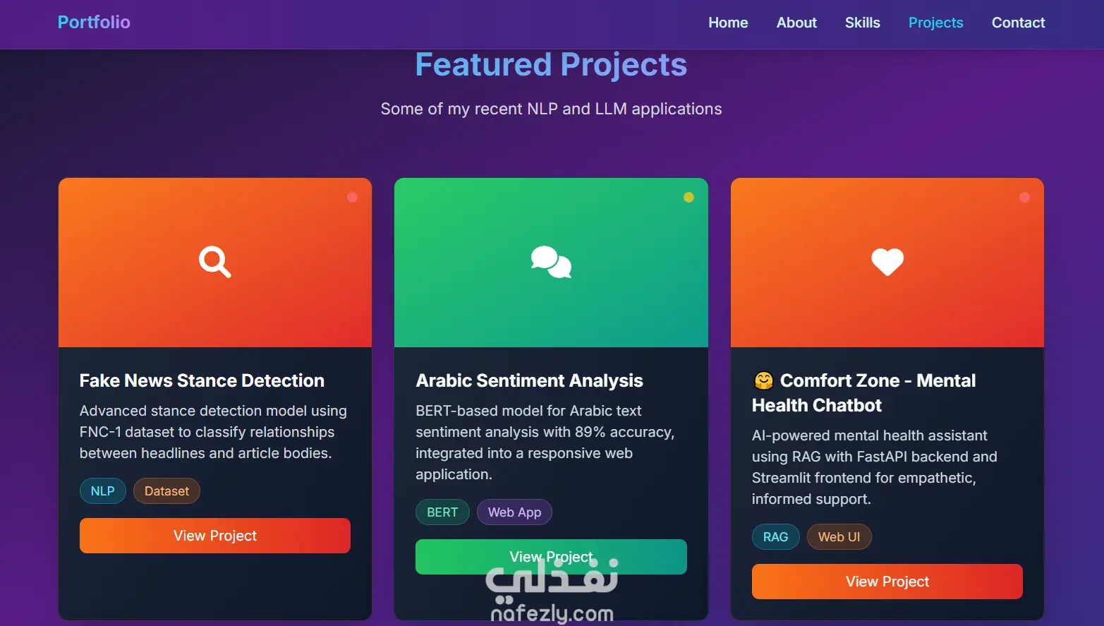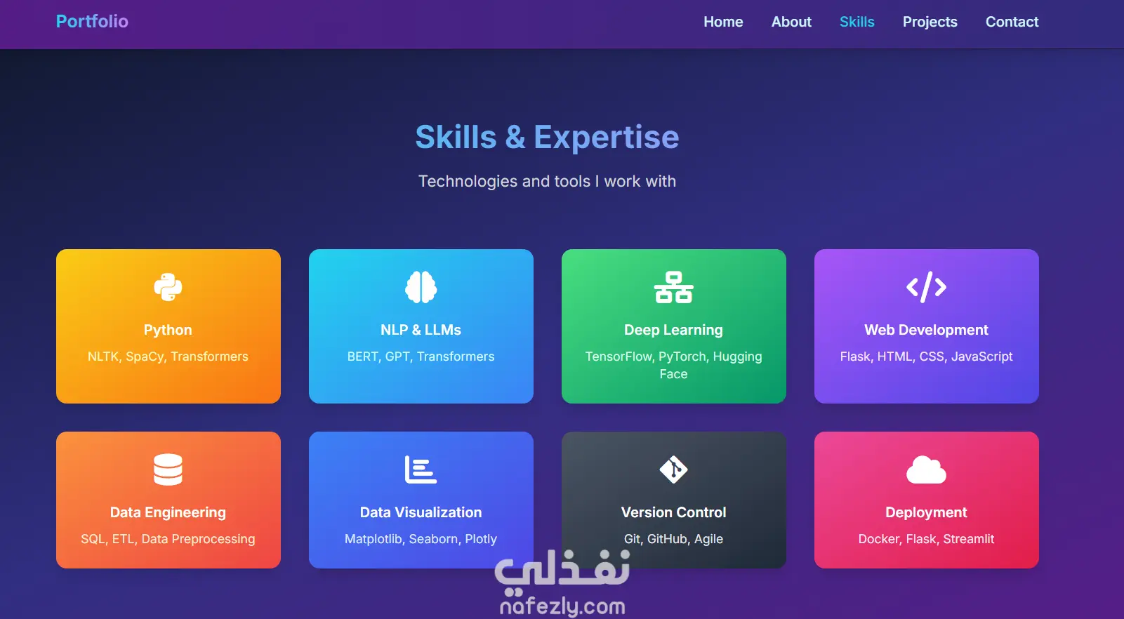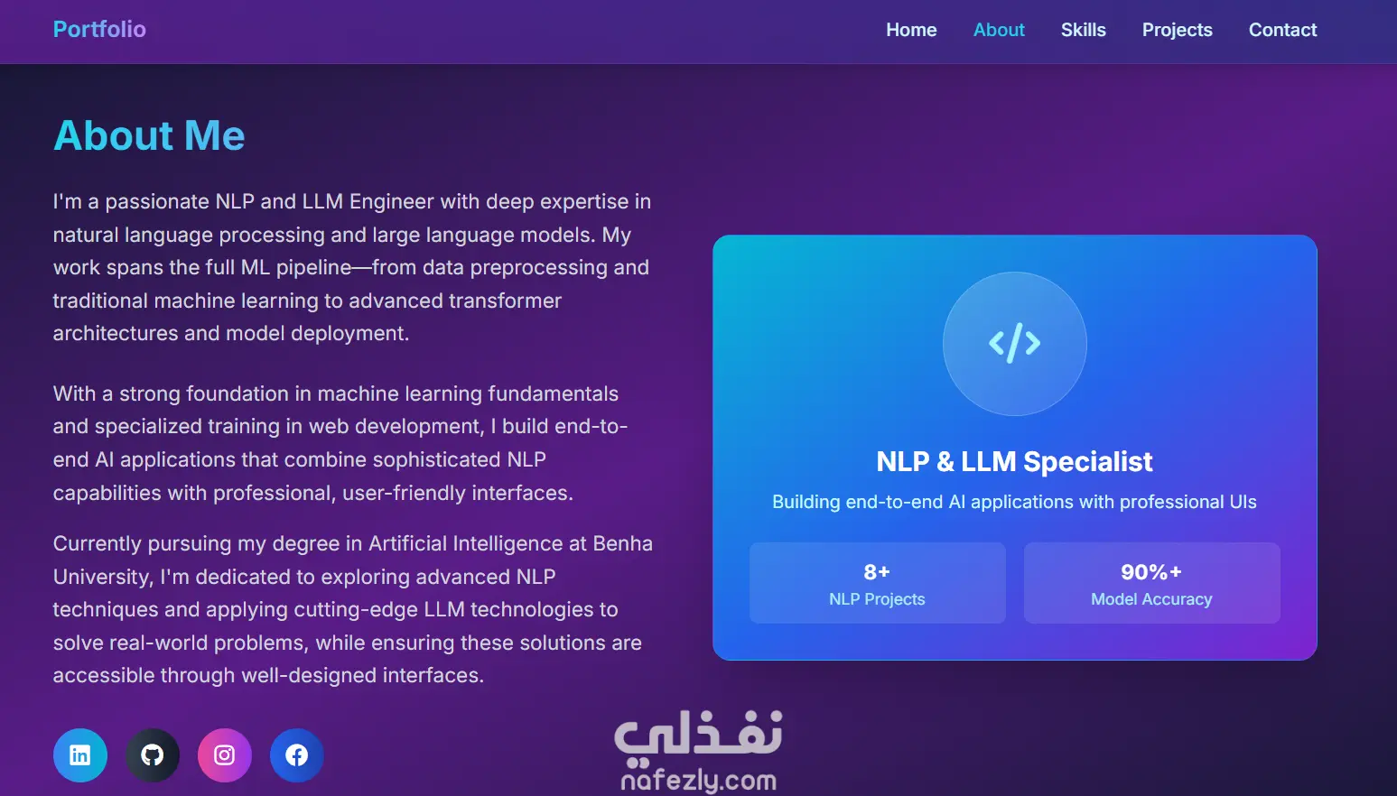 هل تبحث عن طريقة احترافية لعرض خبراتك وبناء حضور قوي على الإنترنت؟ يسعدني أن أقدم لك تصميم موقع Portfolio متكامل يعكس مهاراتك التقنية ويحوّل خبراتك إلى واجهة احترافية تجذب الشركات والعملاء. 🔹 محتوى الموقع يشمل: صفحة ترحيبية (Hero Section) جذابة مع صورة شخصية متحركة وتعريف واضح بالتخصص. قسم من أنا يعرض الخلفية الأكاديمية والخبرة العملية بأسلوب احترافي. قسم المهارات مع عرض بصري تفاعلي للتقنيات والأدوات المستخدمة. قسم المشاريع لعرض أعمالك مع روابط GitHub مباشرة. قسم التعليم والشهادات بتصميم Timeline منظم. قسم آراء الزملاء والعملاء (Testimonials) لزيادة المصداقية. صفحة تواصل تحتوي على: نموذج إرسال رسائل مباشر إشعارات تفاعلية (Toast Notifications) بيانات التواصل وروابط السوشيال ميديا QR Code للتواصل عبر واتساب تذييل (Footer) احترافي بروابط سريعة وحسابات التواصل. 🎯 مميزات التصميم والتنفيذ: تصميم متجاوب بالكامل (Responsive) يعمل بسلاسة على جميع الأجهزة. استخدام Animations احترافية (Scroll – Hover – Transition Effects). تجربة مستخدم سلسة (UX) وتنظيم بصري واضح. ألوان متدرجة عصرية تعكس الطابع التقني والاحترافي. سرعة تحميل عالية وكود منظم وقابل للتطوير. إبراز الهوية الشخصية والتخصص بشكل واضح وقوي. 👩💻 التقنيات المستخدمة: HTML5 Tailwind CSS JavaScript Font Awesome Icons Intersection Observer API EmailJS لإرسال الرسائل Responsive & Animated UI