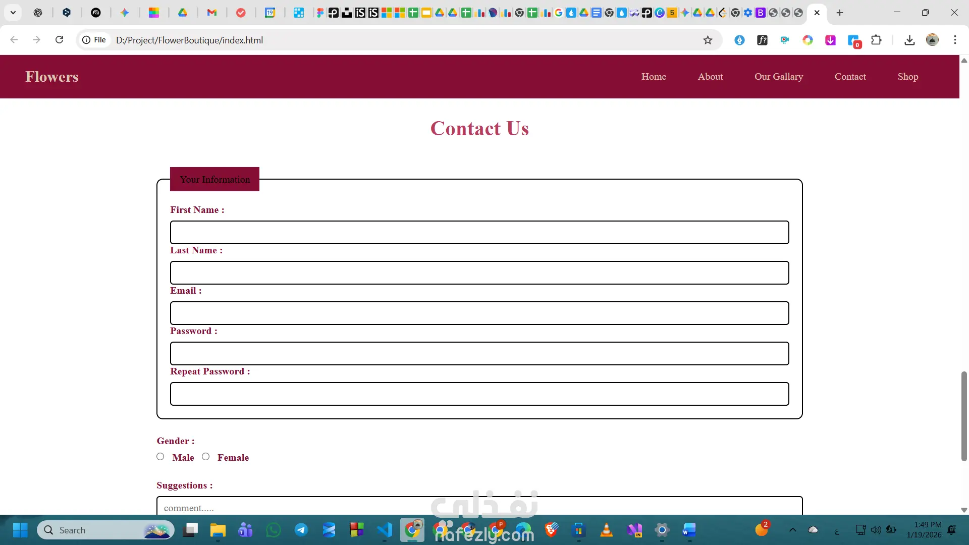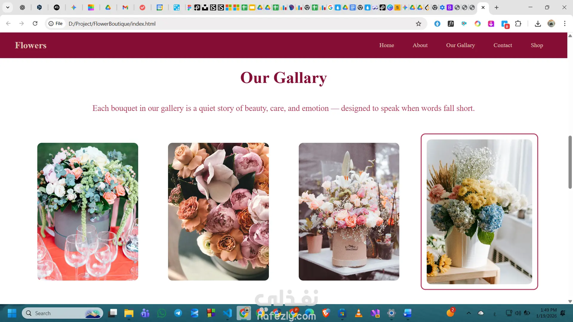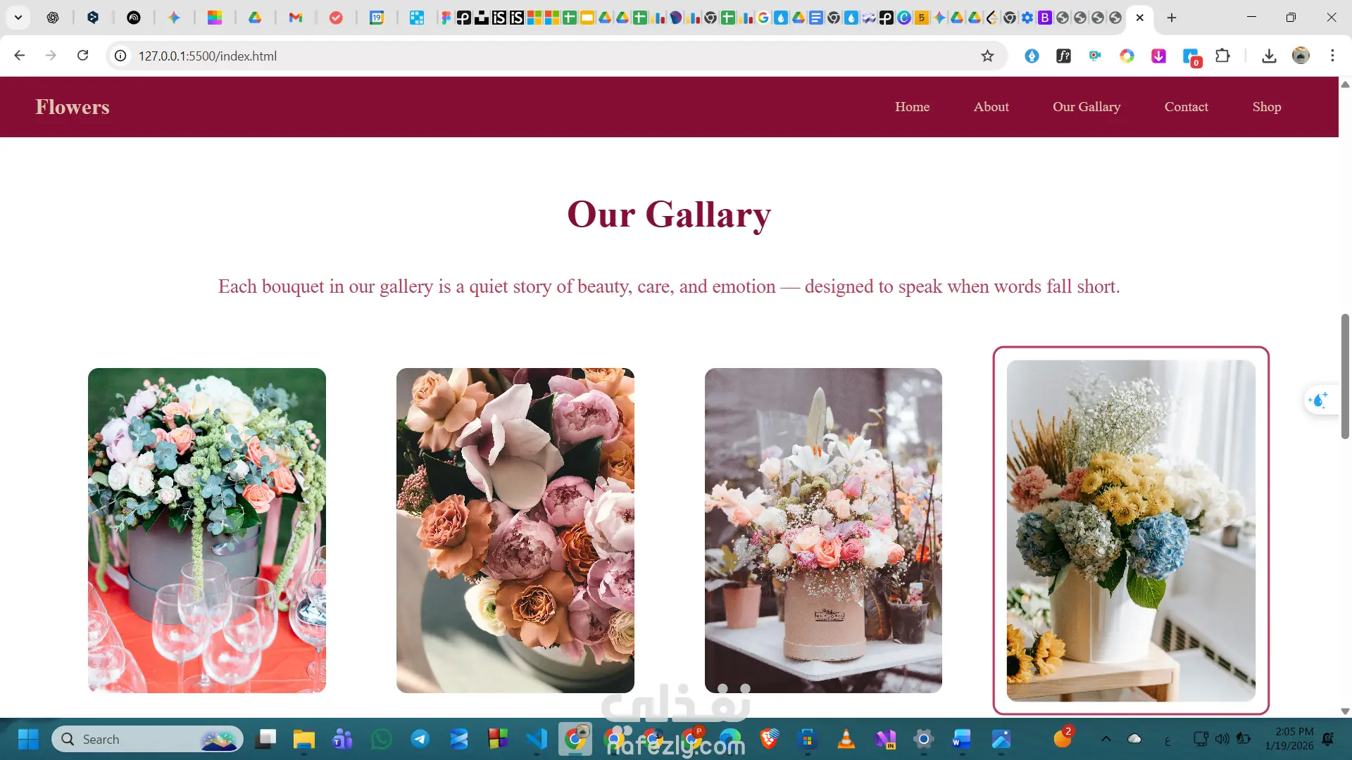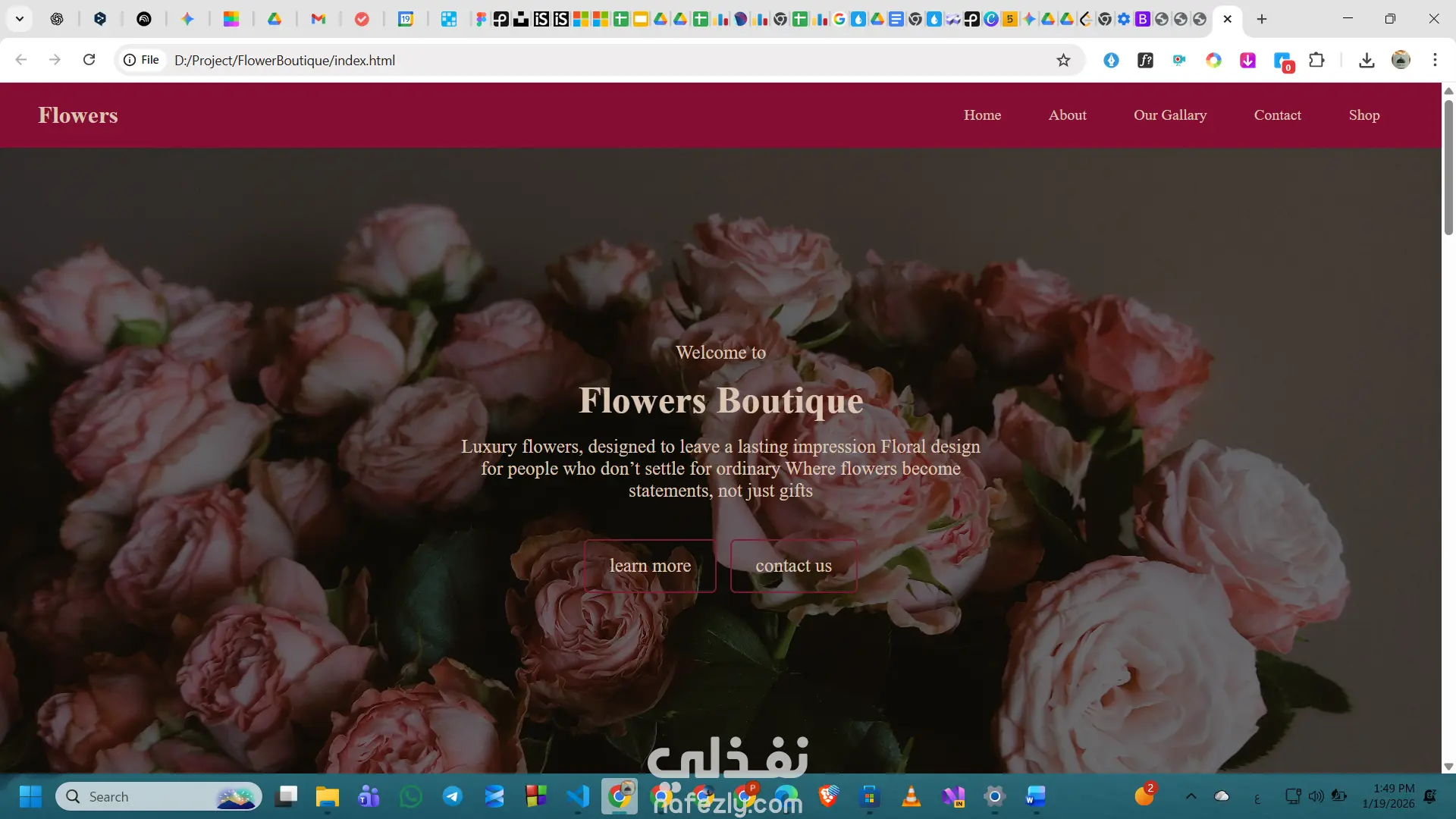 تصميم وتطوير واجهة Landing Page لمتجر زهور فاخر، يركز على إبراز الهوية البصرية والجانب العاطفي للعلامة التجارية.