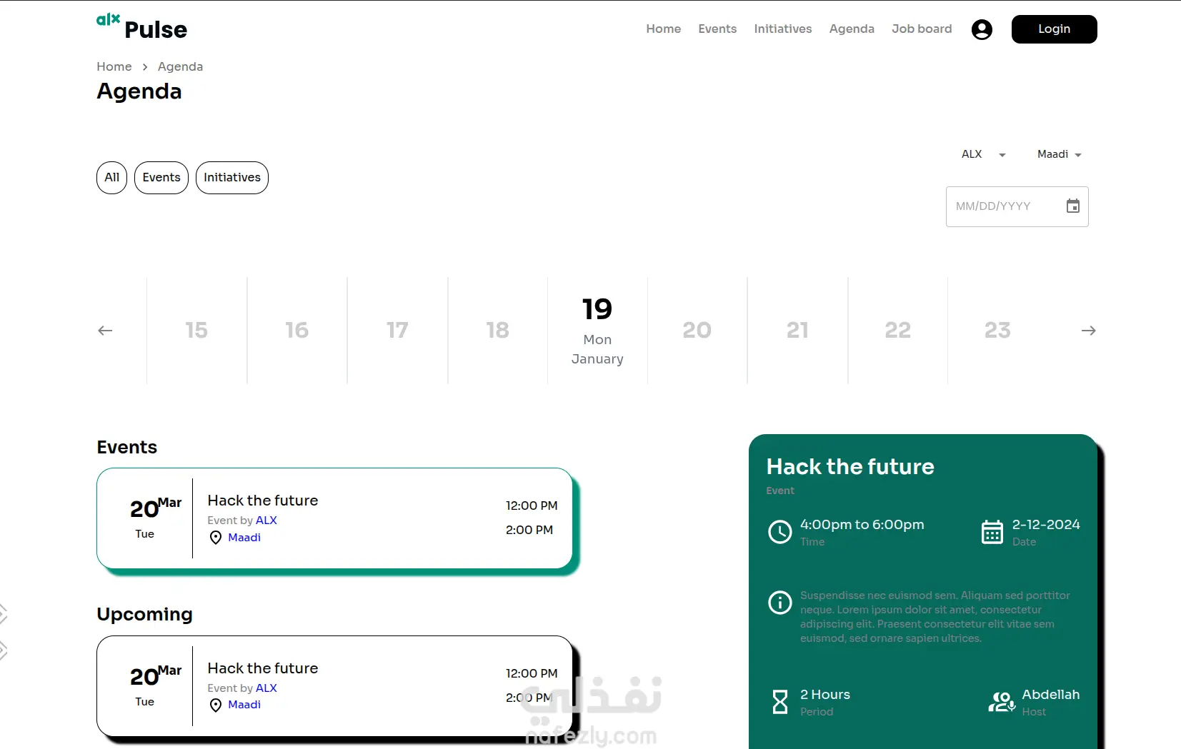 - Agenda موحّدة لعرض الجداول الزمنية مع فلاتر ذكية للأحداث والمبادرات.
