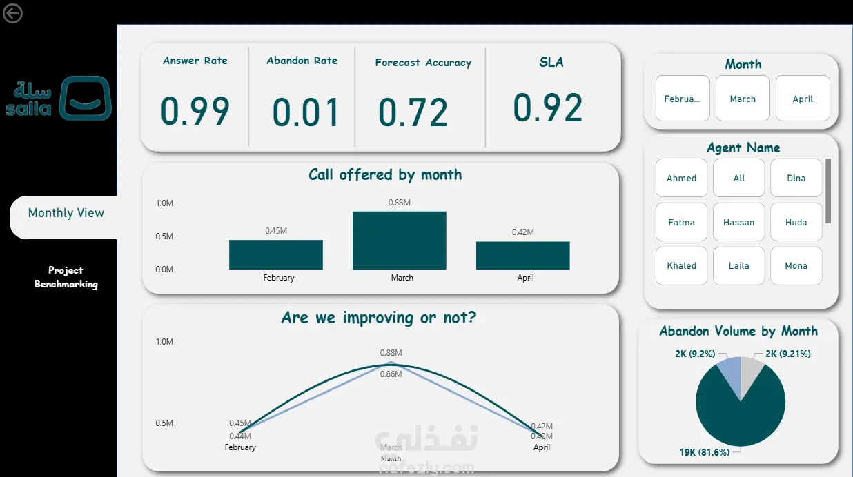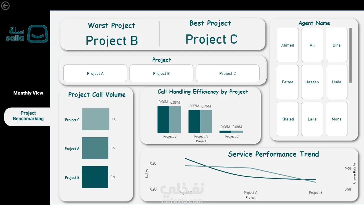 قمت بتنفيذ مشروع تحليل بيانات وبناء Dashboard تفاعلية باستخدام Power BI، حيث تم العمل على تجهيز البيانات من مصادر متعددة وتنظيفها ومعالجتها بشكل كامل لضمان الدقة والجودة. تم تحديد وبناء أهم مؤشرات الأداء الرئيسية (KPIs) بما يتناسب مع طبيعة نشاط الشركة، مع استخدام DAX لإنشاء Measures دقيقة تساعد على قياس الأداء الفعلي ومتابعة النتائج بشكل واضح. اعتمدت الـ Dashboard على مجموعة من الرسوم البيانية والبطاقات التحليلية التي توضح الاتجاهات، نقاط القوة، ومناطق التحسين، مما ساهم في استخراج Insights مهمة ساعدت الإدارة على اتخاذ قرارات مبنية على البيانات وتحسين الأداء العام. تم تسليم Dashboard احترافية وسهلة الاستخدام، متوافقة مع الهوية البصرية، بالإضافة إلى تقرير تحليلي يوضح أهم النتائج وإمكانية تسليم ملف PBIX قابل للتعديل.