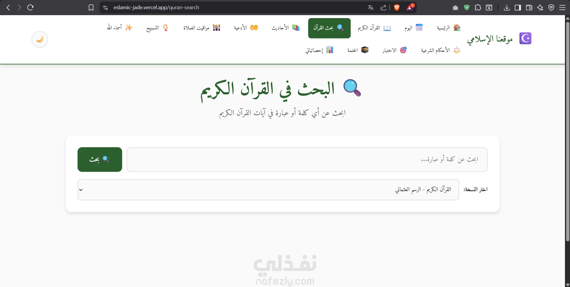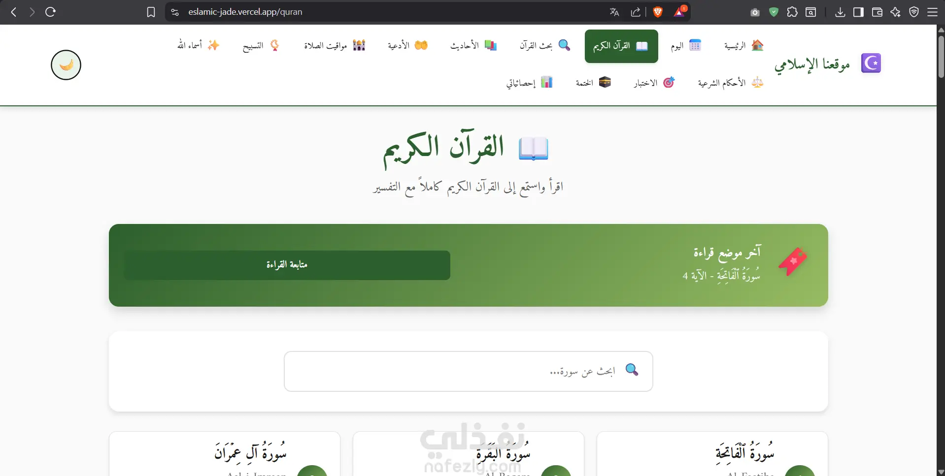 موقع عرض القرآن الكريم شامل بواجهة بسيطة وسريعة