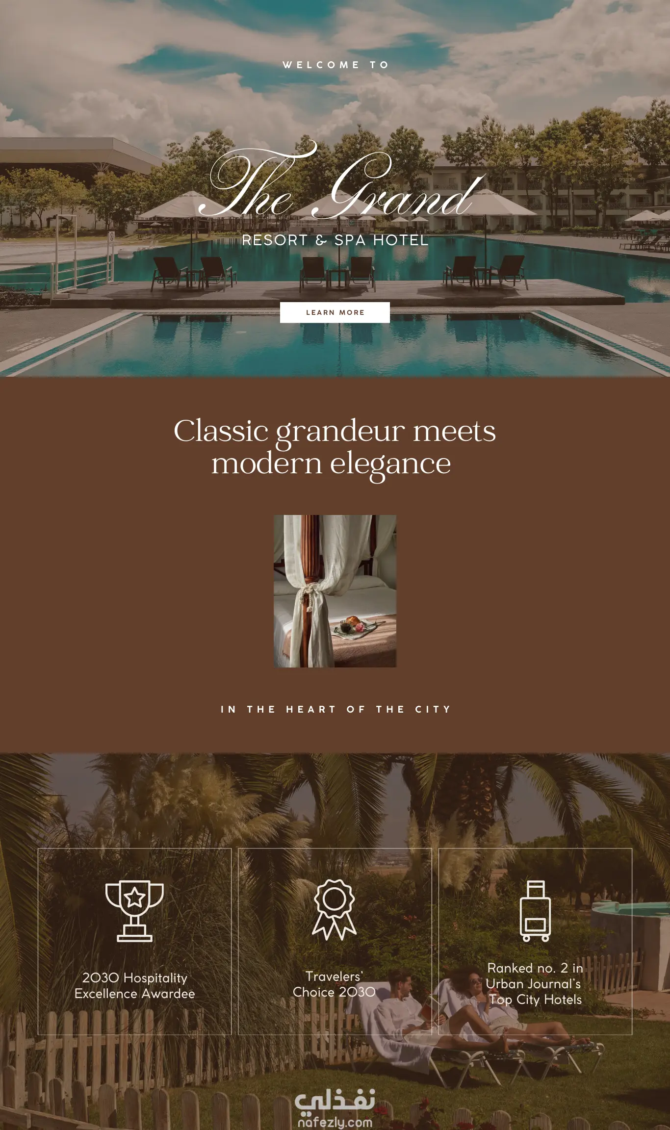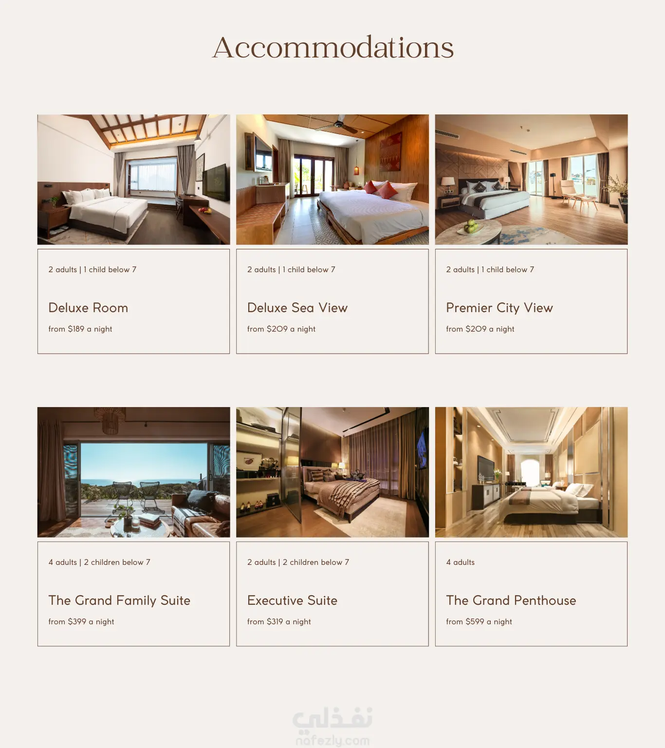 Hotel Website in Brown Beige Light Blue Style