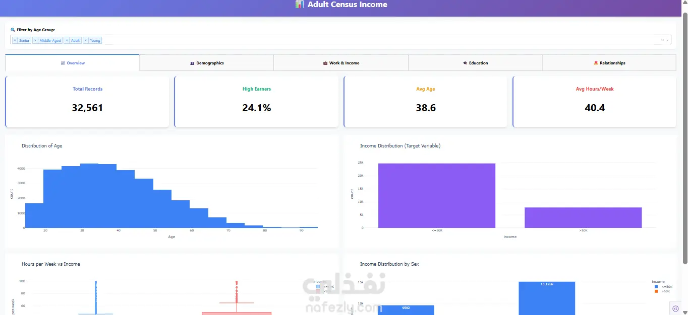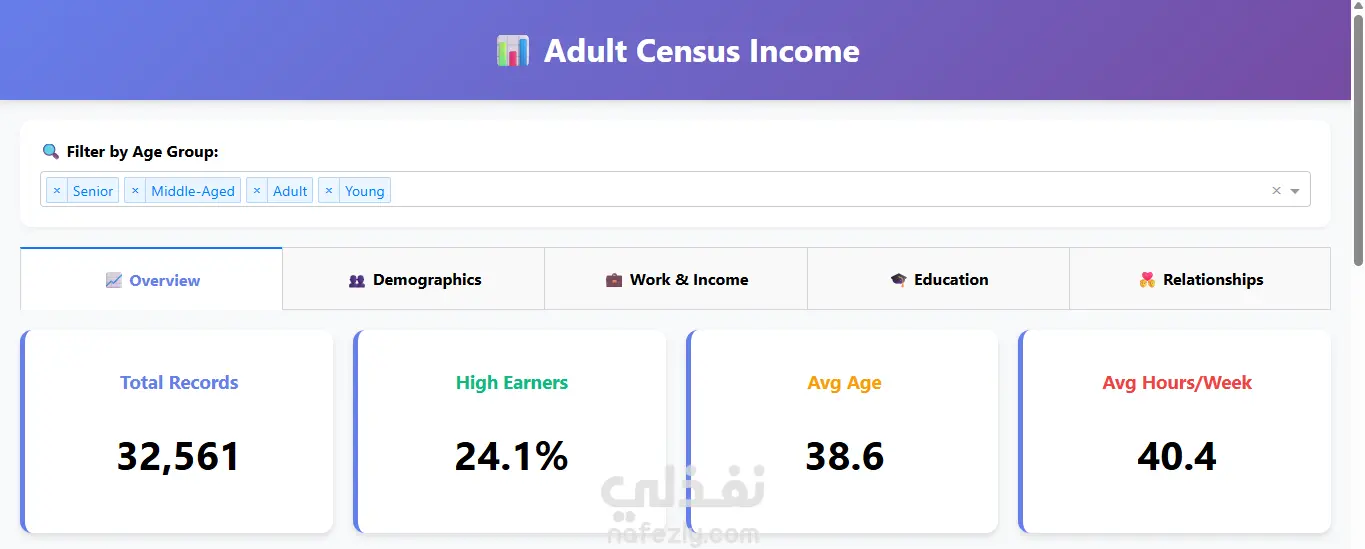 لوحة تفاعلية لتحليل دخل الأفراد – Adult Census Income Dashboard