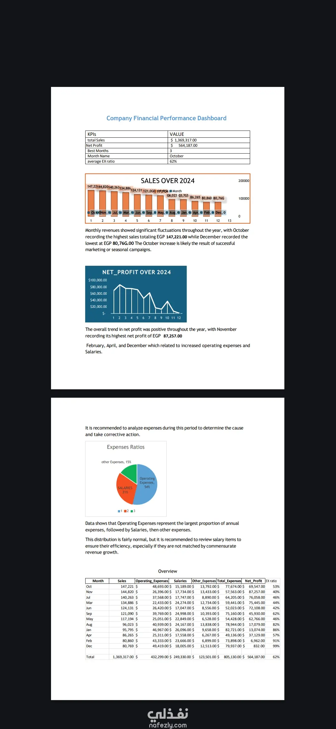 تحليل مالي للقوائم المالية والوضع المالي للعام المالي الأسبق بإستخدام Excel