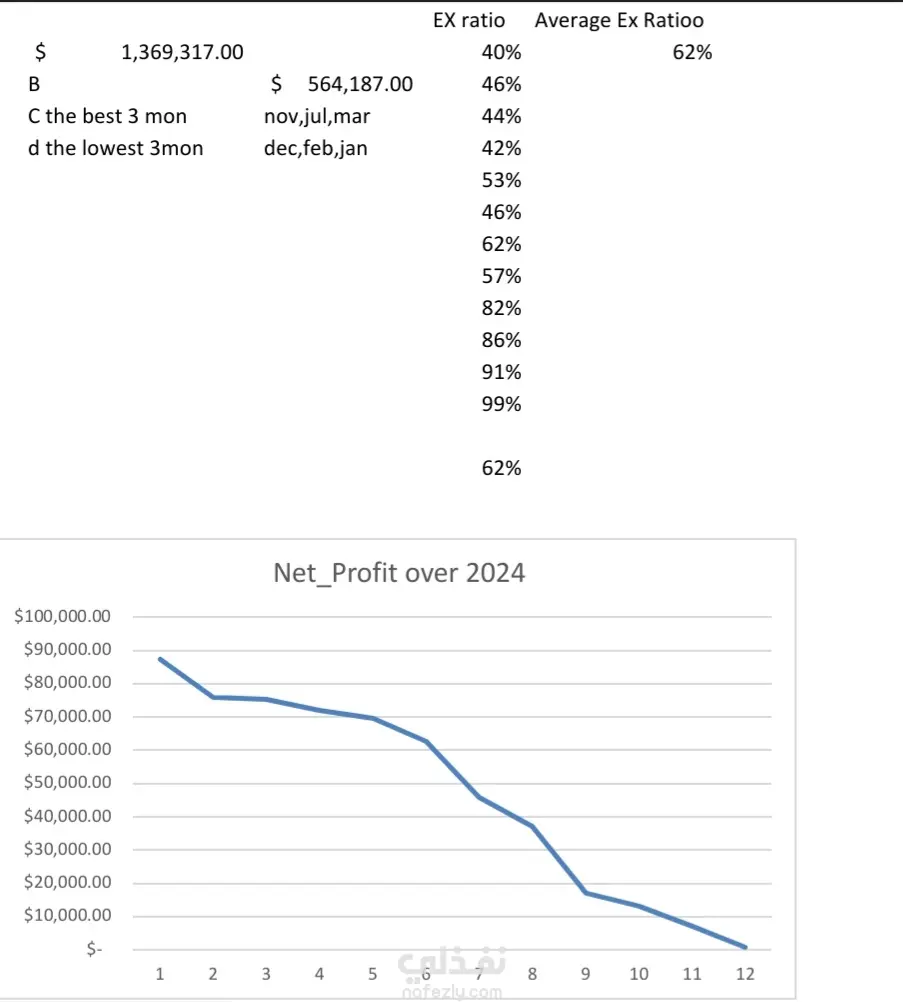 تحليل الارباح والخسائر والاتجاهات لعام مالي للقوائم المالية بإستخدام برنامج Excel , Power BI