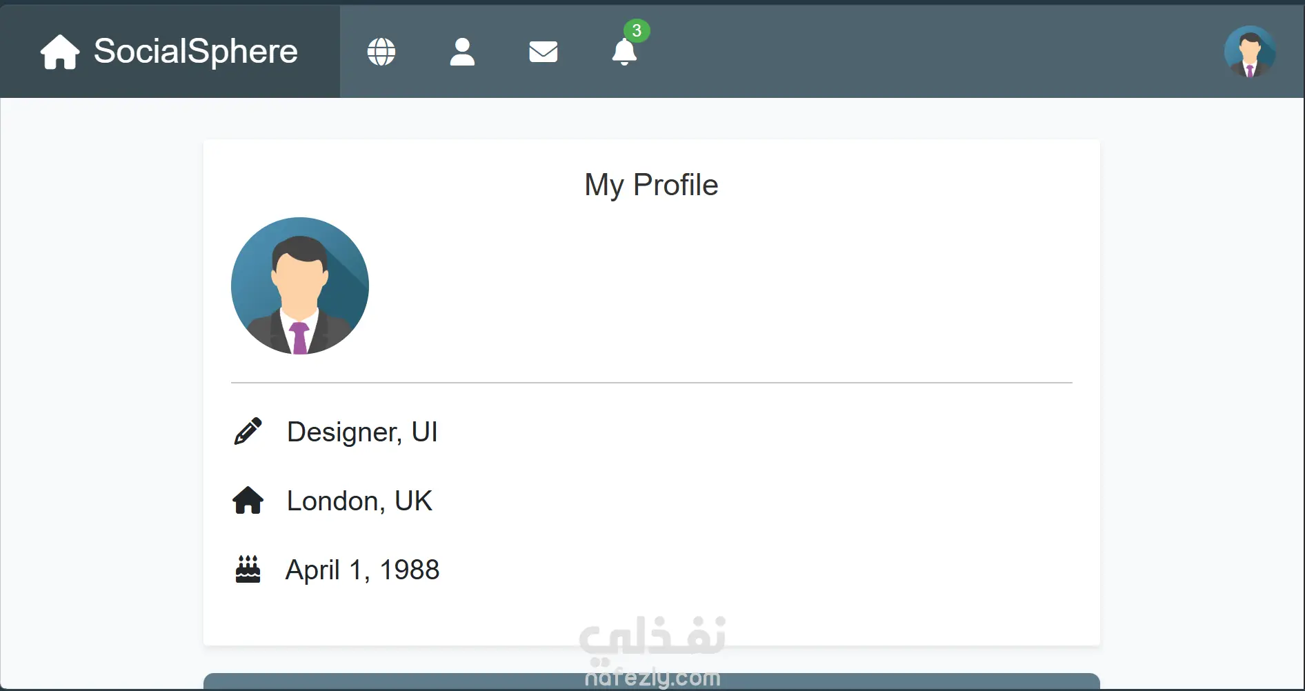 يُعد SocialSphere لوحة تحكم اجتماعية أنيقة وتفاعلية صُممت لمحاكاة تجربة المستخدم في المنصات الحديثة. تم بناؤه باستخدام Bootstrap، HTML5، CSS3، وJavaScript، ويعرض تخطيطًا متجاوبًا بالكامل مع تنقل سلس، أقسام ديناميكية، وتفاعلات جذابة للمستخدمين. المميزات الرئيسية: - 🧭 شريط تنقل علوي مع إشعارات فورية وأيقونات وصول سريع. - 👤 شريط جانبي للملف الشخصي يعرض بيانات المستخدم، الاهتمامات، وروابط الأنشطة. - 📝 التغذية المركزية لكتابة تحديثات الحالة ومشاركة الوسائط مع إمكانية الإعجاب والتعليق. - 📅 شريط جانبي أيمن يعرض الأحداث القادمة، طلبات الصداقة، ومساحات للإعلانات. - 📱 تصميم متجاوب للهواتف مدعوم بشبكة Bootstrap وفئات المساعدة. - ⚙️ عناصر تفاعلية باستخدام JavaScript لتحديثات ديناميكية وتغذية راجعة للمستخدم