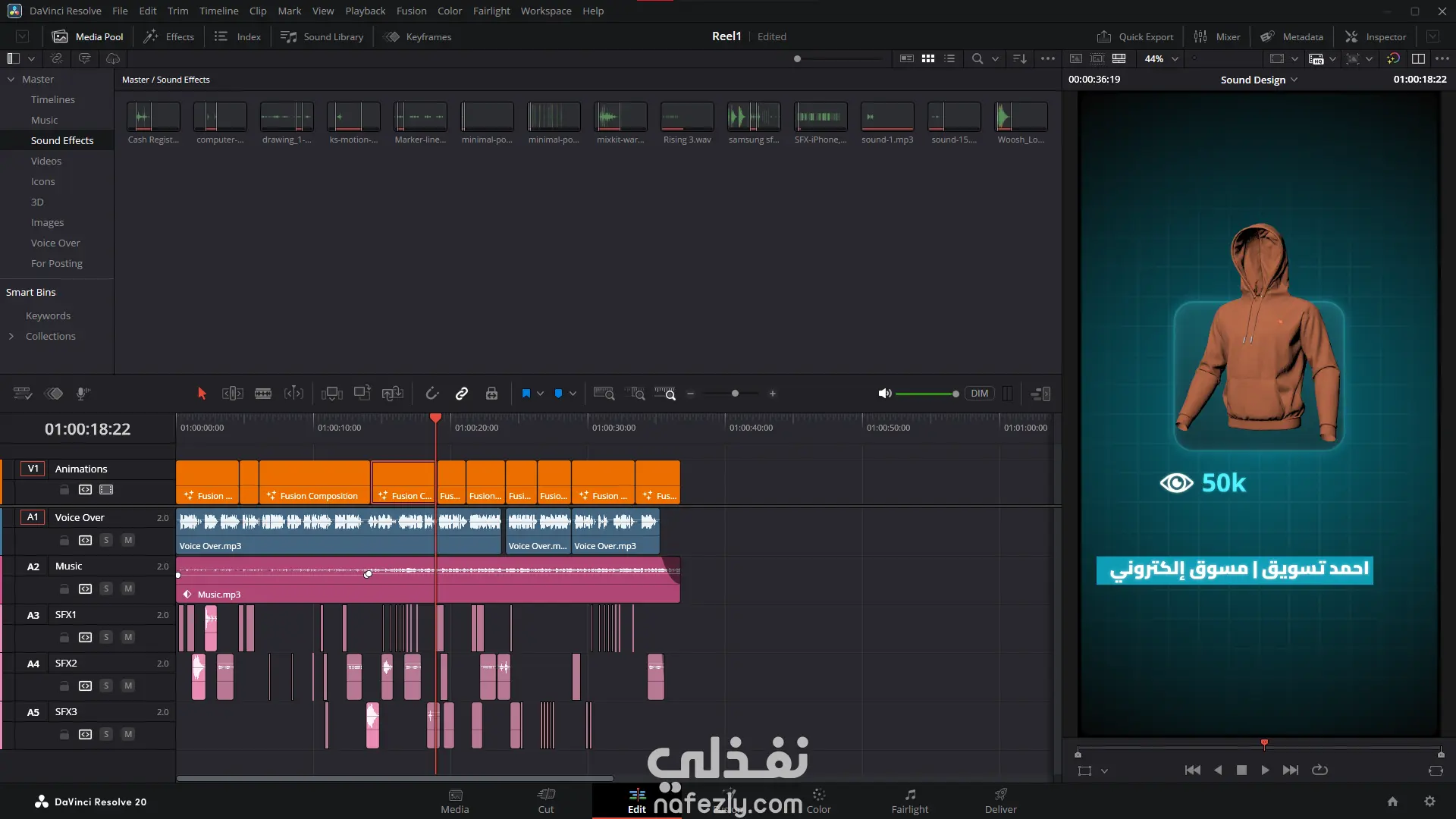 This video is an ad for Mr. Ahmed, who works in marketing. I focused on showcasing his previous work, which includes videos, posters, marketing plans, and the results of his efforts. I started with the storyboard, then moved to DaVinci Resolve. I used the Edit page to organize the clips, Fusion for motion graphics, and Fairlight for sound design.