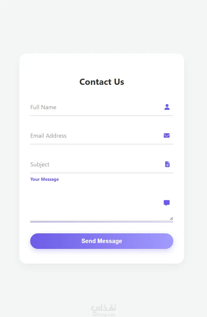 A clean and user-friendly contact form interface designed using HTML and CSS, focusing on input field styling and user experience. The form includes clear fields for user name, email.