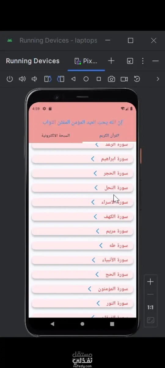 خريج حديث متحمس وملتزم بالتفاصيل، أمتلك شغفًا كبيرًا بتطوير تطبيقات الهواتف المحمولة وبناء حلول تقنية مبتكرة. خلال دراستي، قمت بتطوير مهاراتي في استخدام أدوات مثل Flutter وDart لإنشاء تطبيقات متعددة المنصات تتميز بواجهات مستخدم جذابة وسهلة الاستخدام. بالإضافة إلى ذلك، لدي خبرة في استخدام Firebase لإدارة قواعد البيانات، والمصادقة، والوظائف الخلفية (Backend) لتطبيقاتي. أبحث عن فرصة للانضمام إلى فريق عمل ديناميكي ومبتكر، حيث يمكنني تطبيق معرفتي التقنية، وتطوير مهاراتي بشكل أكبر من خلال التعلم من المحترفين ذوي الخبرة. أسعى للمساهمة في بناء تطبيقات عالية الجودة تلبي احتياجات المستخدمين وتقدم تجارب مستخدم استثنائية. أنا متحمس لاستكشاف تقنيات جديدة، والعمل في بيئة تعاونية، والمساهمة في نجاح المشاريع التقنية المبتكرة. باختصار، أنا شخص طموح، سريع التعلم، ومستعد لبذل الجهد لتحقيق التميز في مجال تطوير التطبيقات. هو تطبيق يتيح للمستخدم قراءة القرأن الكريم وايضا تم اضافة سبحة الكترونية وبمختلف الجمل او الكلمات