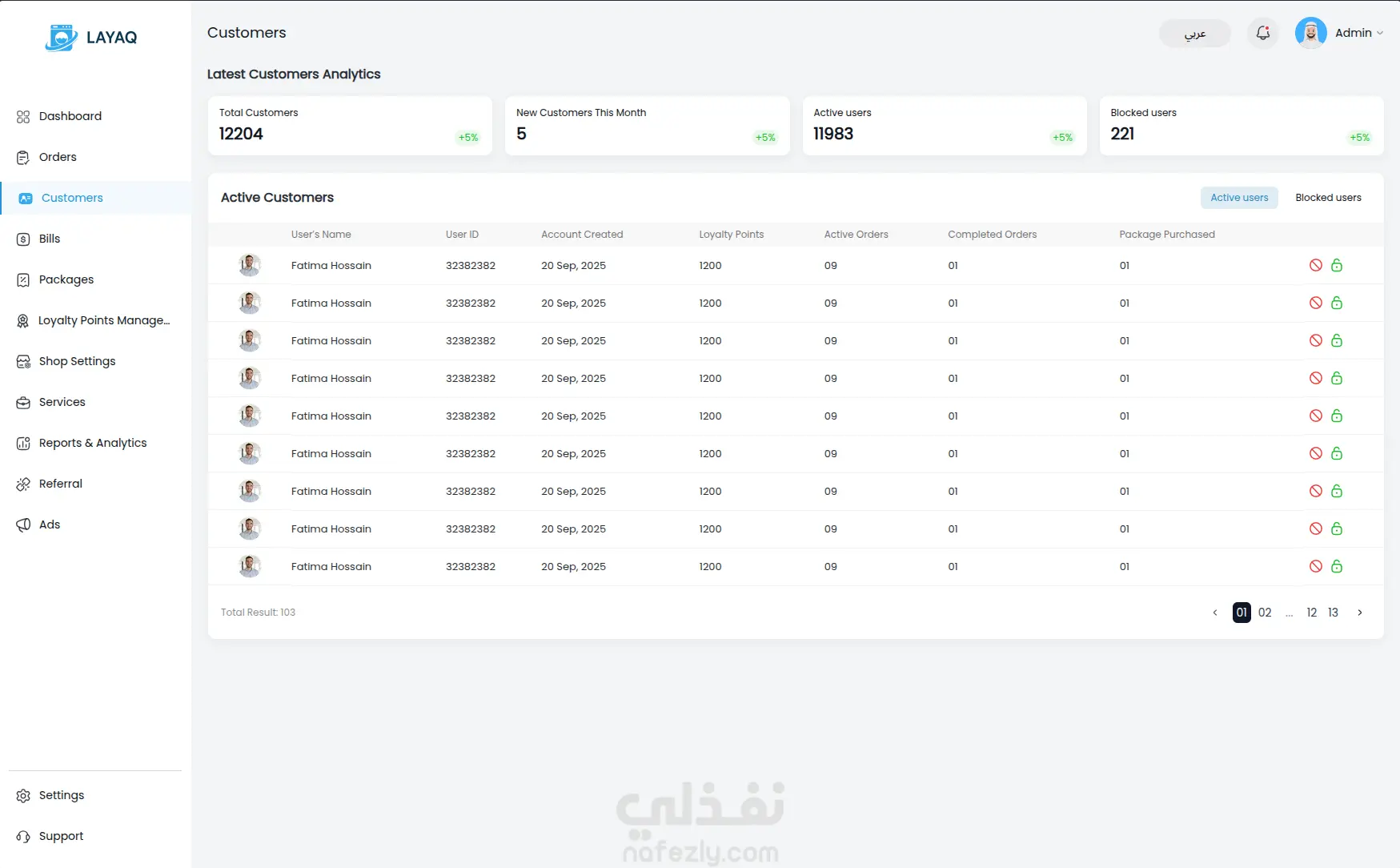 - تصنيف العملاء (جدد – نشطين – محظورين)