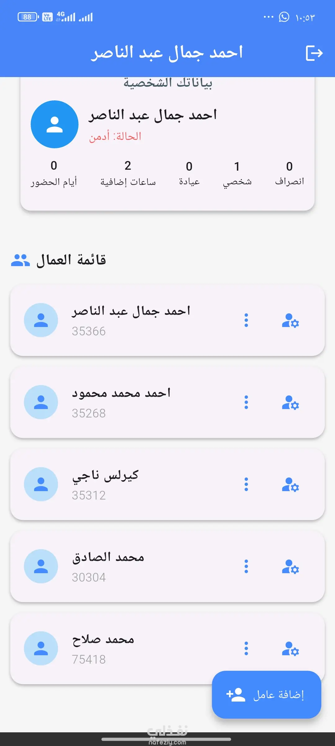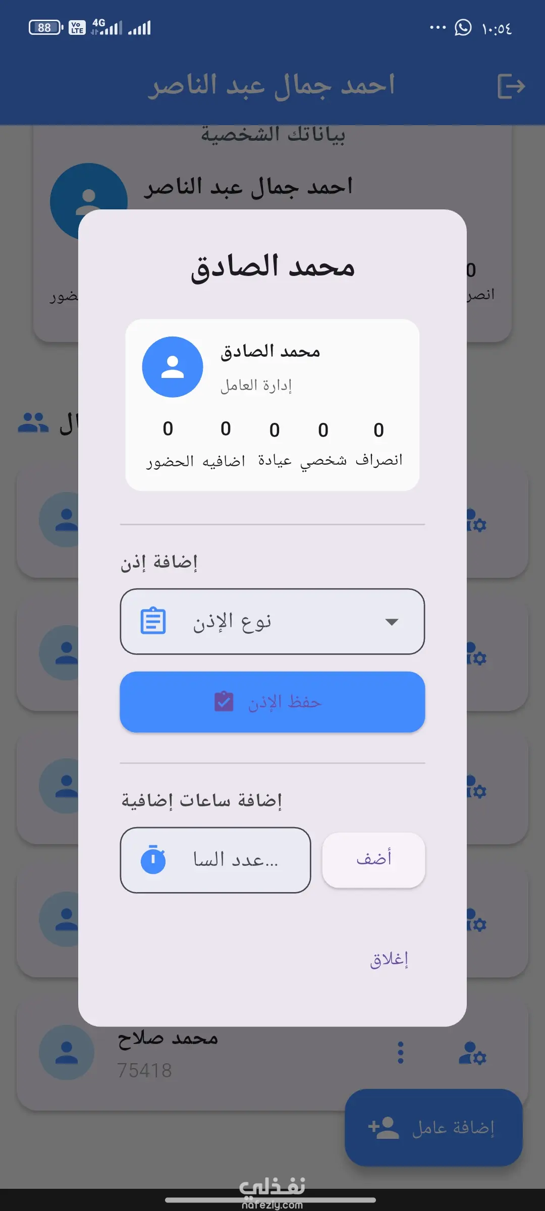 برنامج ده للتحكم في حضور الغياب للعاملين بالورشه وساعات الاضافي وساعات الانصراف المبكر والاذونات والاذونات الشخصيه اذا كان مرض دقيق او عياده او انصراف مبكر من العمل ممكن تضيف كمان عليه رواتب ممكن تضيف خصومات ممكن تضيف عليه ايام الحضور وايام الغياب ممكن تعمل عليه تقييمات كل ده نقدر اقدر اقدر اضيفه في البرنامج كمان بس هو اللي كان الطلب مني ساعتها الحاجات القليله دي بس البرنامج قبل متوسع يعني انه يقدر يتحكم في ورشه مكونه مثلا ممكن 50 او 60 عامل تتحكم في كل حاجه خاصه بيهم من رواتب من كل حاجه يعني في امكانيه كمان ان العامل نفسه كمان يعرف ايام الحضور وايام الغياب بتاعته والاذونات وعدد الساعات اللي معاه واقدر اضيف له كمان ان هو لو المرتب نزل في خلال يبعت له رساله