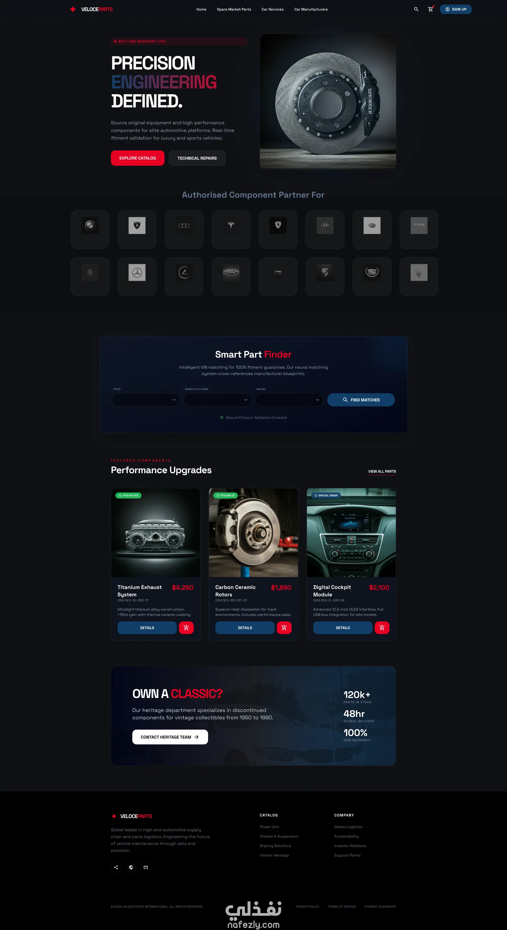 تصميم واجهات وتجربة مستخدم لمنصة تجارة إلكترونية وخدمات سيارات عالية الأداء (VeloceParts)