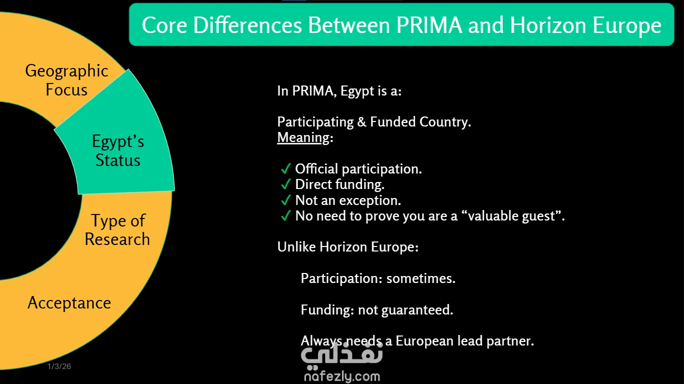 This file provides a comprehensive overview of PRIMA (Partnership for Research and Innovation in the Mediterranean Area) and Horizon Europe, highlighting their objectives, funding mechanisms, and collaborative opportunities