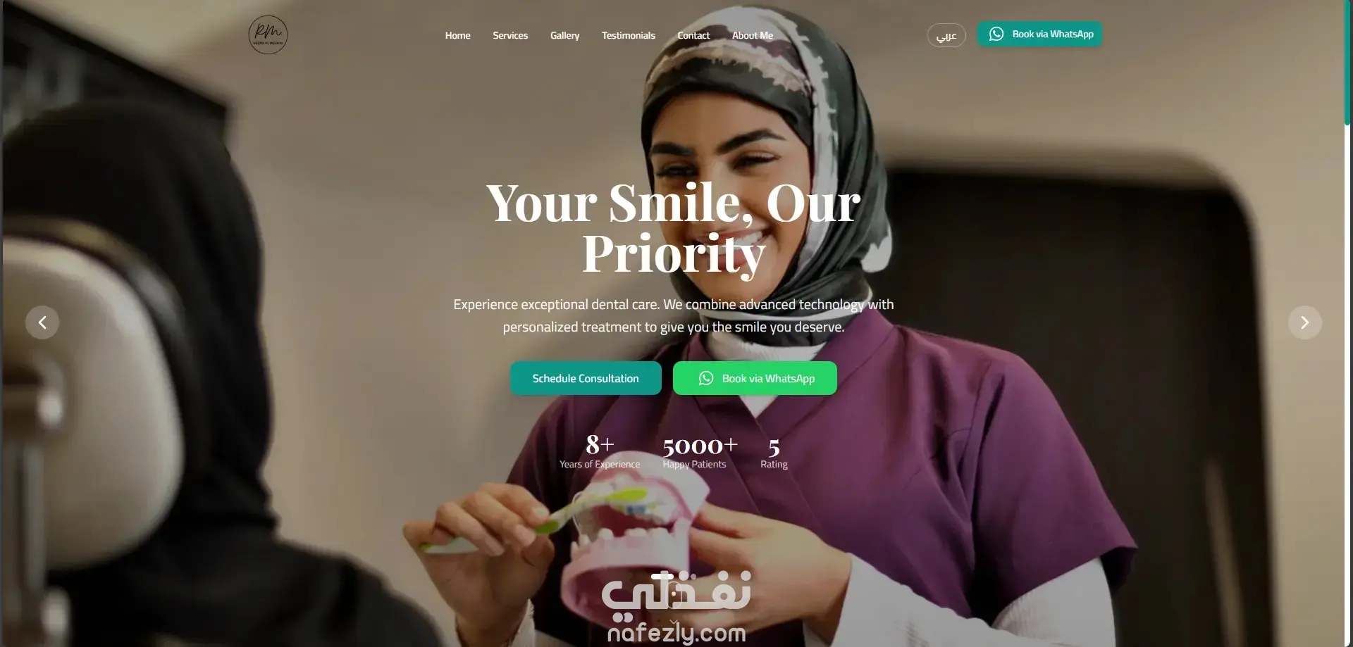 موقع بورتفوليو وعيادة لطبيبة أسنان