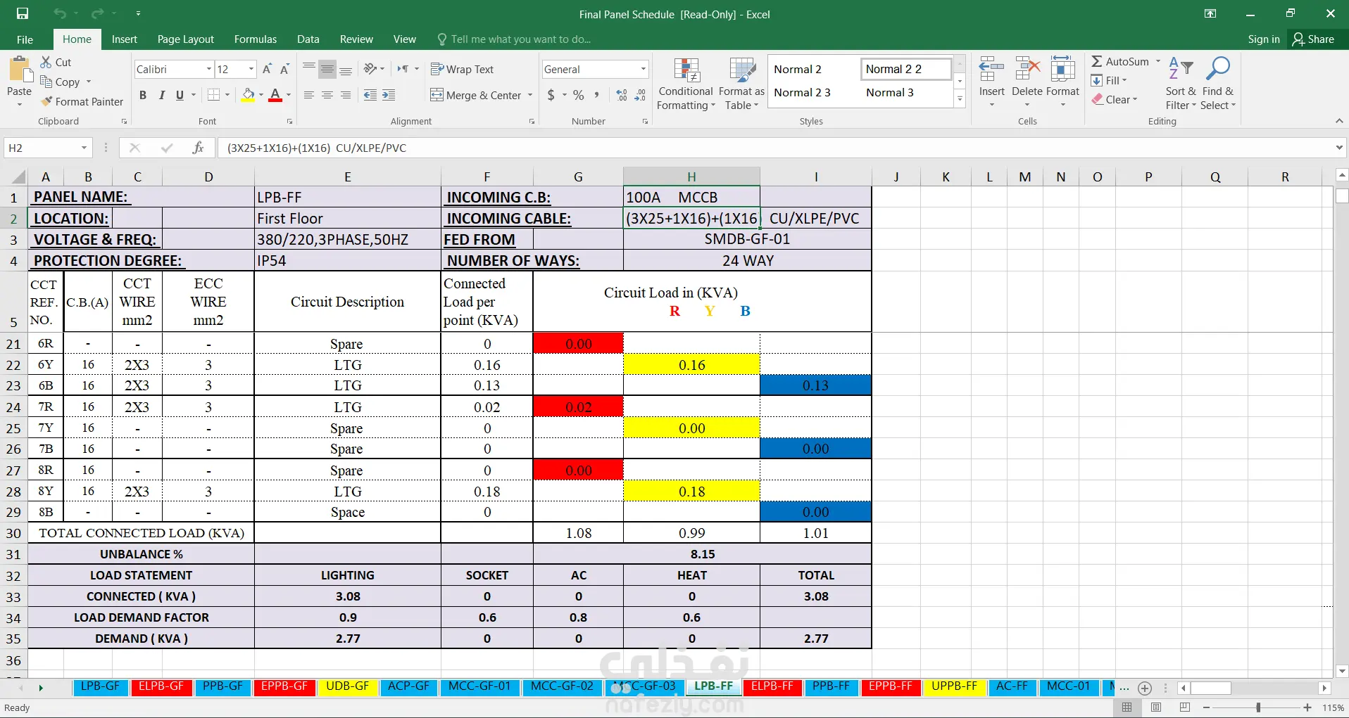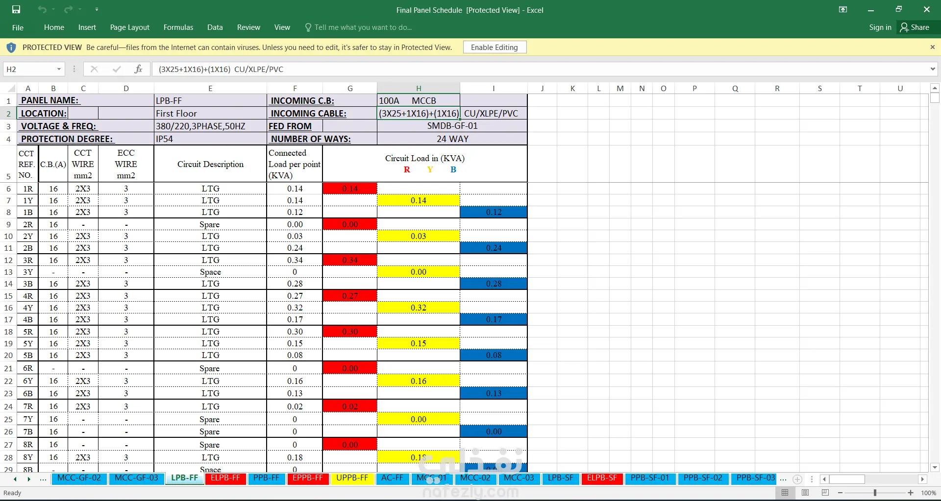 تصميم أنظمة الإنارة (Lighting Design): توزيع وحدات الإنارة بناءً على حسابات شدة الإضاءة المطلوبة لكل فراغ، مع إعداد جدول الرموز (Luminaires Legend) والمواصفات الفنية (Datasheets). تصميم أنظمة القوى (Power Design): توزيع مخارج الكهرباء (Sockets) بمختلف أنواعها (Single, Twin, Weatherproof) وتحديد أماكن نقاط القاطع الكهربائي (Disconnect Switches). تصميم اللوحات الكهربائية (SLD): إعداد المخطط الخط الواحد (Single Line Diagram) الذي يوضح الأحمال وطريقة الربط بين اللوحات الرئيسية والفرعية. دراسة الأحمال الكهربائية (Load Estimation): إجراء الحسابات التقديرية للأحمال لضمان كفاءة التوزيع واختيار القواطع والكابلات المناسبة. أنظمة التأريض والصواعق (Earthing & Lightning): تصميم نظام حماية متكامل للمبنى لضمان سلامة الأفراد والمعدات. التنسيق الهندسي (MEP Coordination): مراجعة تداخلات الأنظمة الكهربائية مع الأنظمة الميكانيكية والصحية لضمان سهولة التنفيذ.