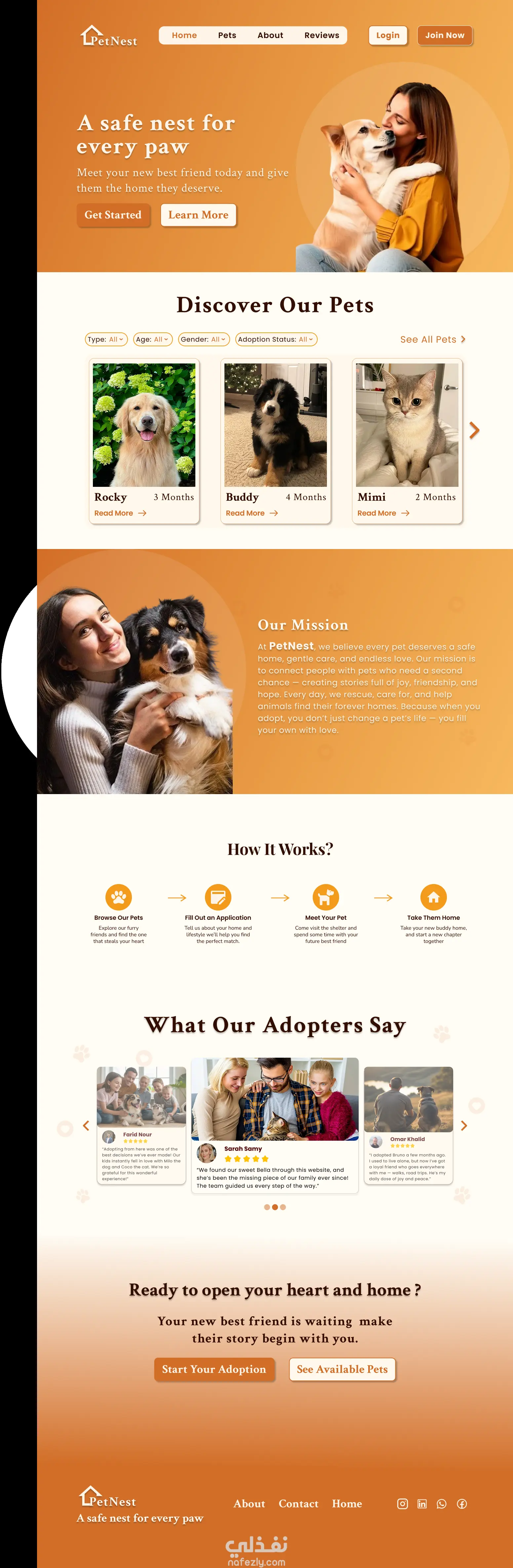 تصميم صفحة هبوط لموقع PetNest لتبني الحيوانات الأليفة