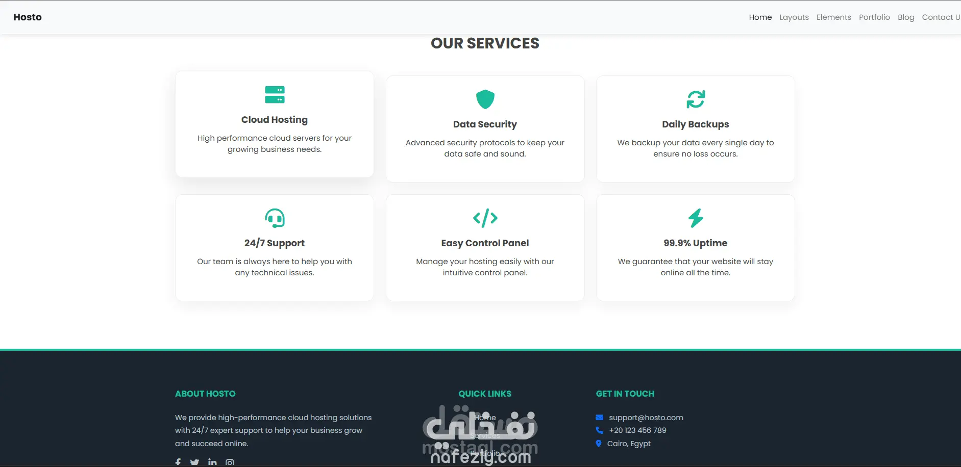 تصميم واجهة موقع استضافة سحابية (Landing Page) عصرية ومتجاوبة