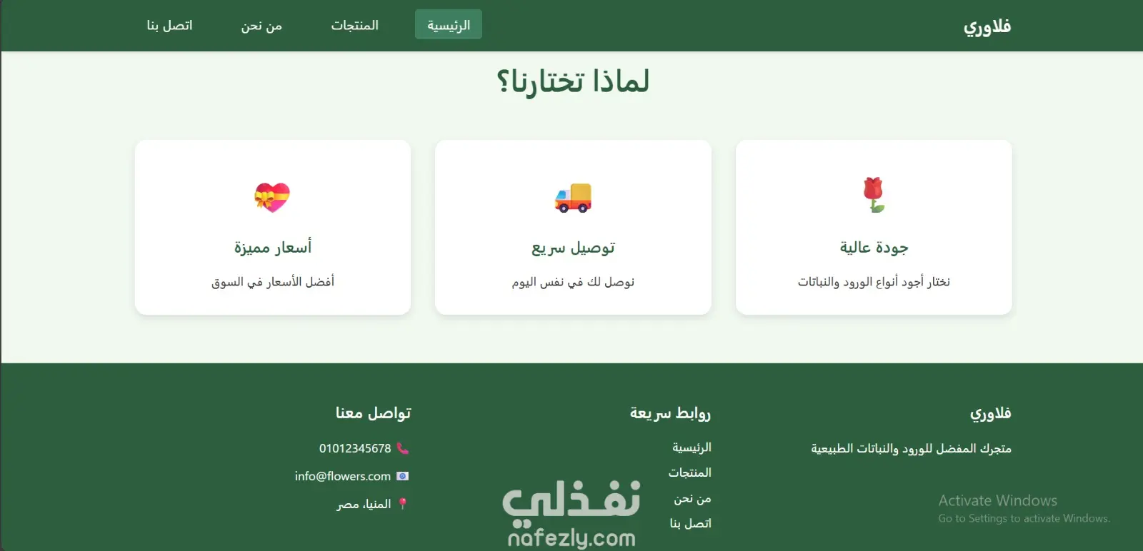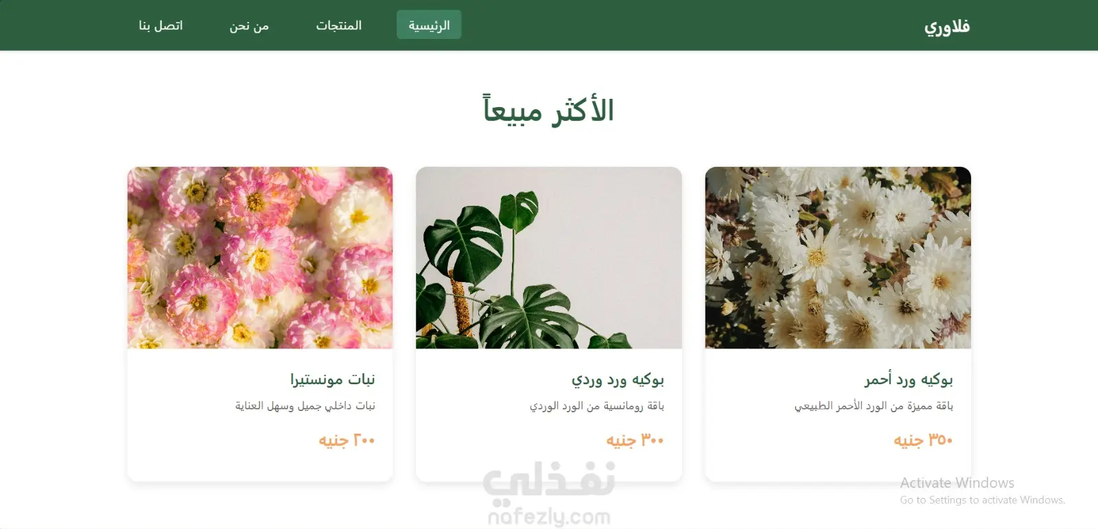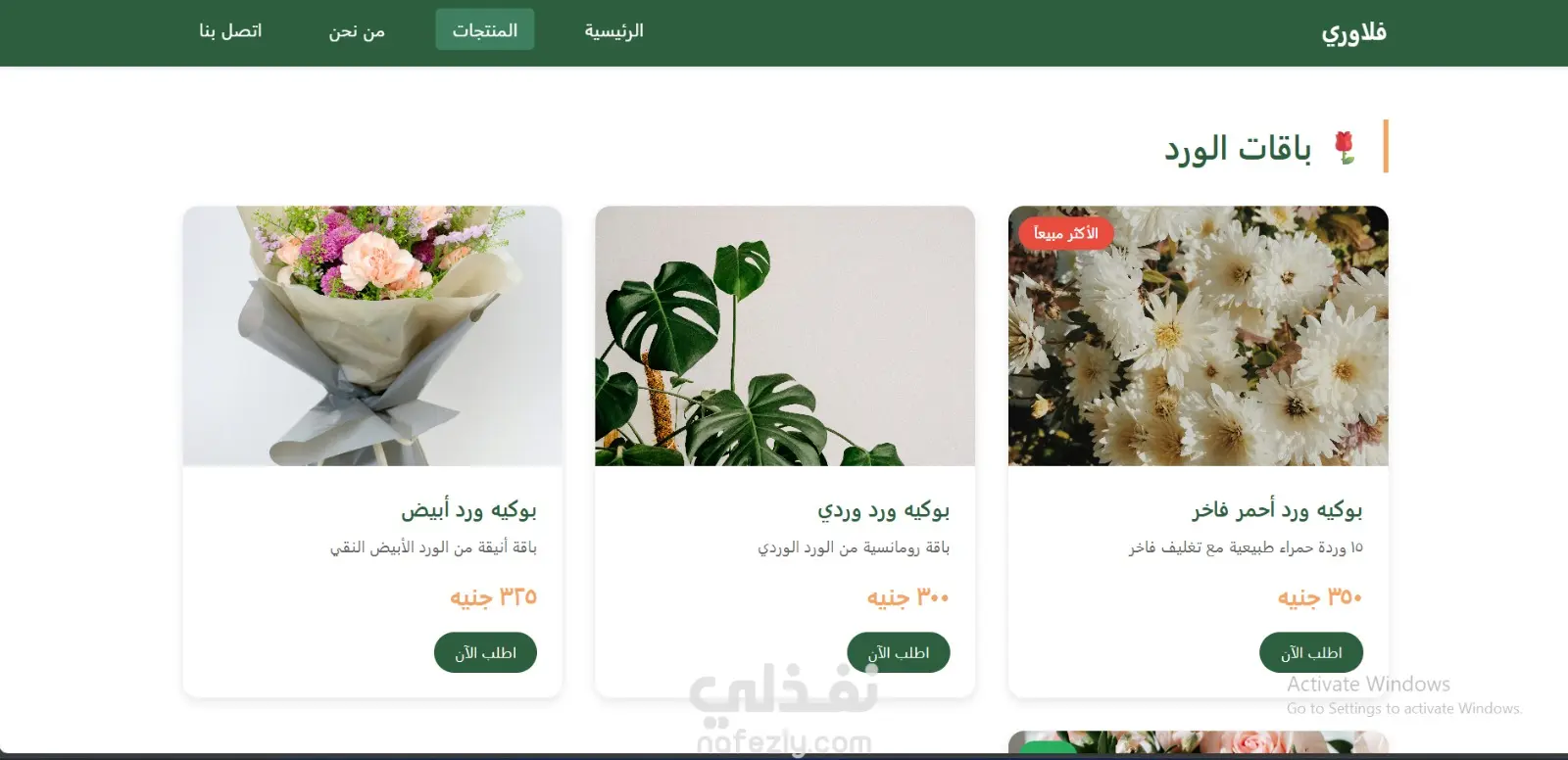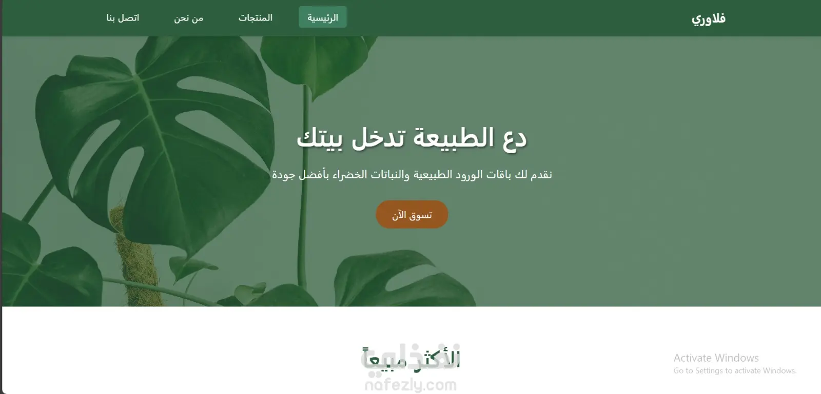 تصميم متجر إلكتروني أنيق لبيع الورود الطبيعية والنباتات المنزلية (Flowers E-Commerce)