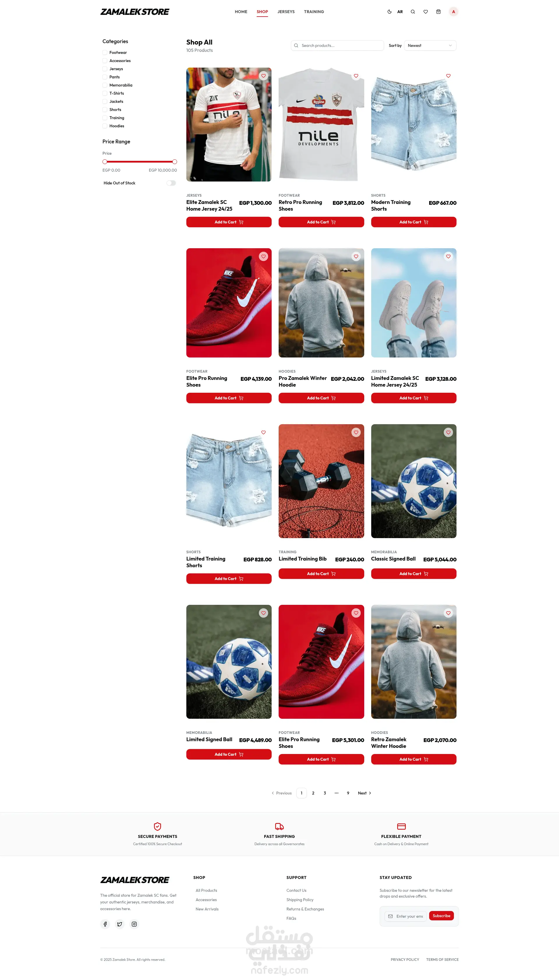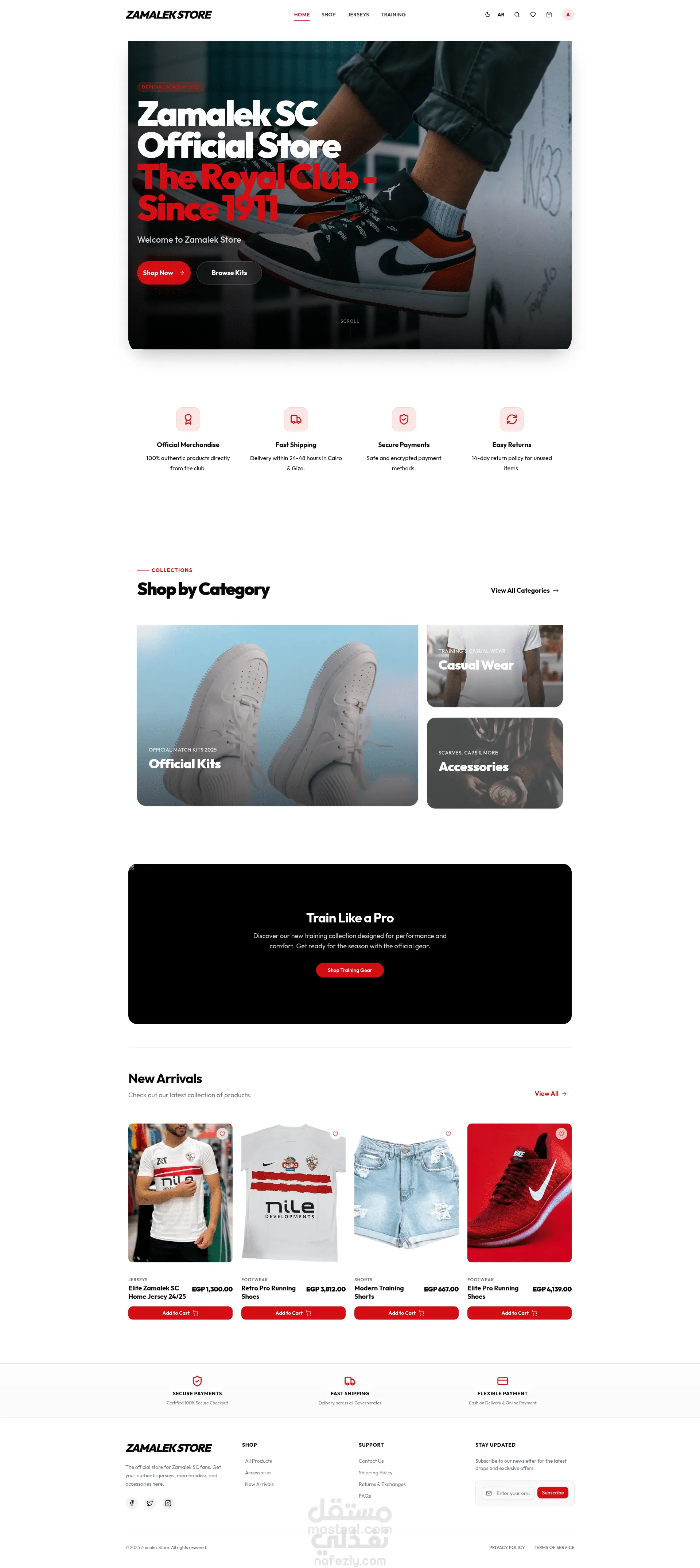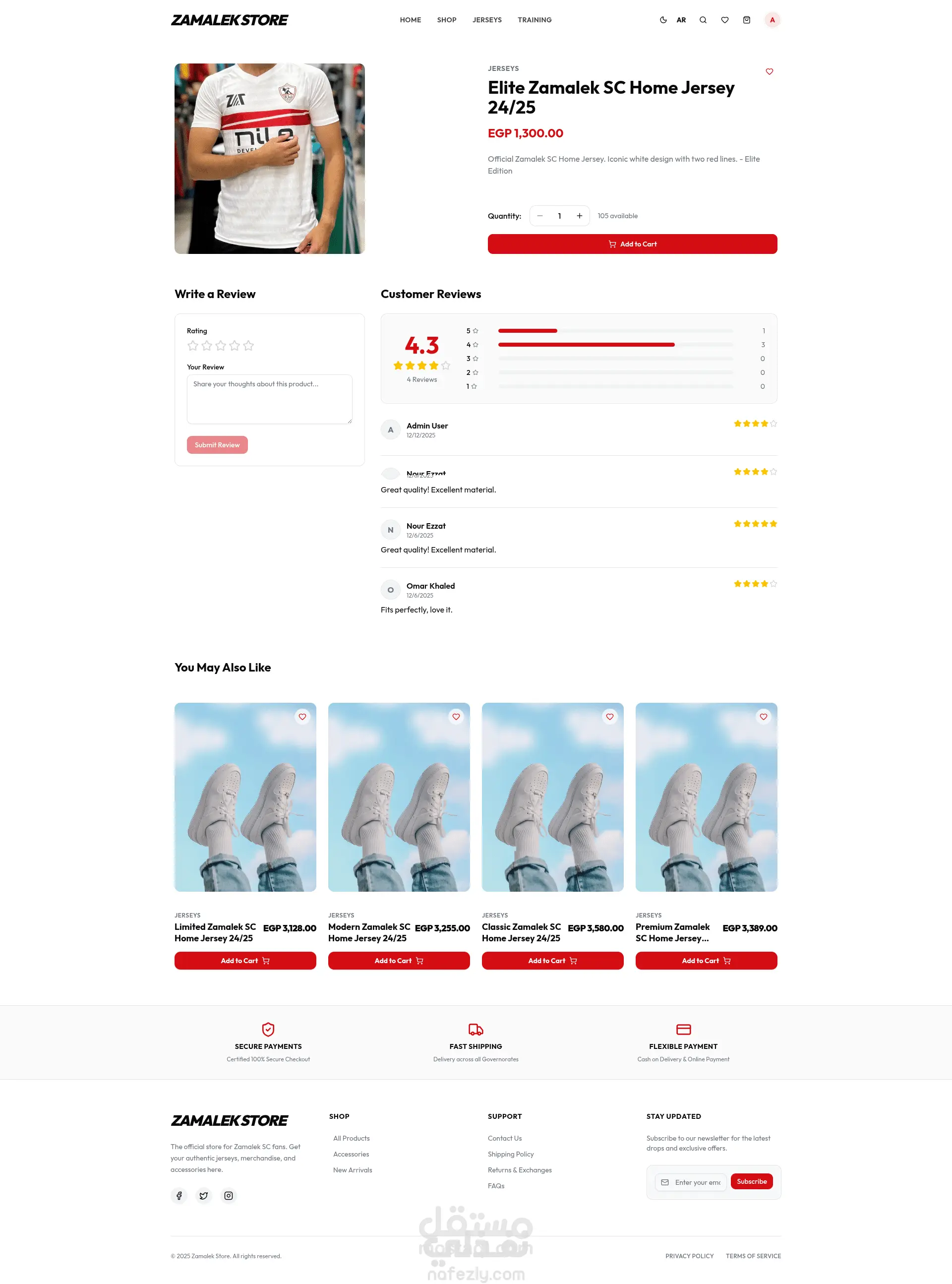 منصة تجارة إلكترونية احترافية مخصصة لبيع منتجات متجر ملابس محليه الصنع رياضيه، مبنية بأحدث التقنيات وproduction ready .