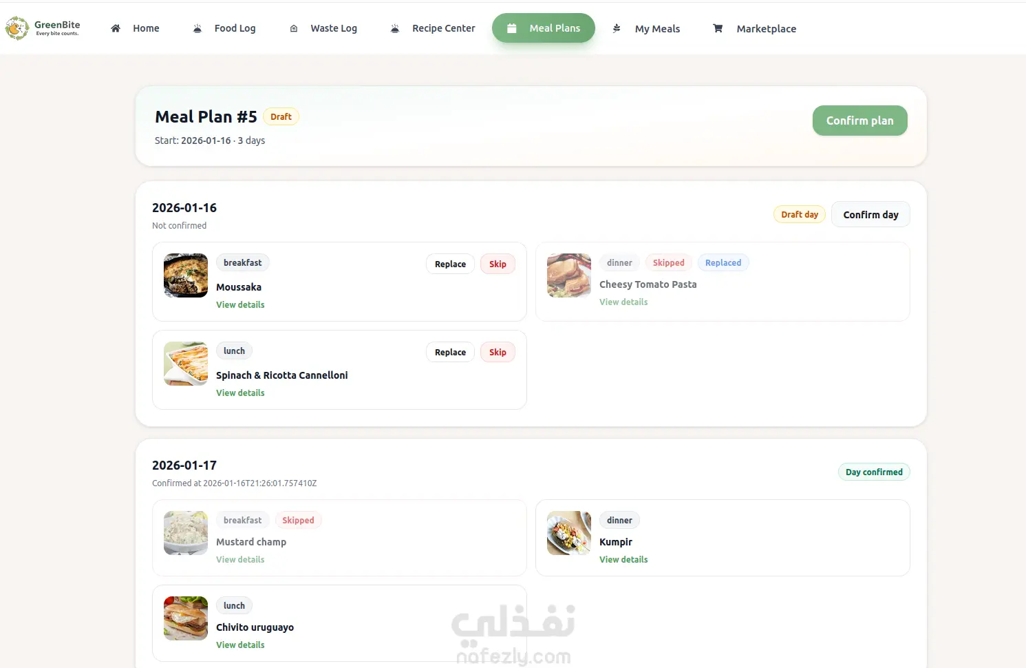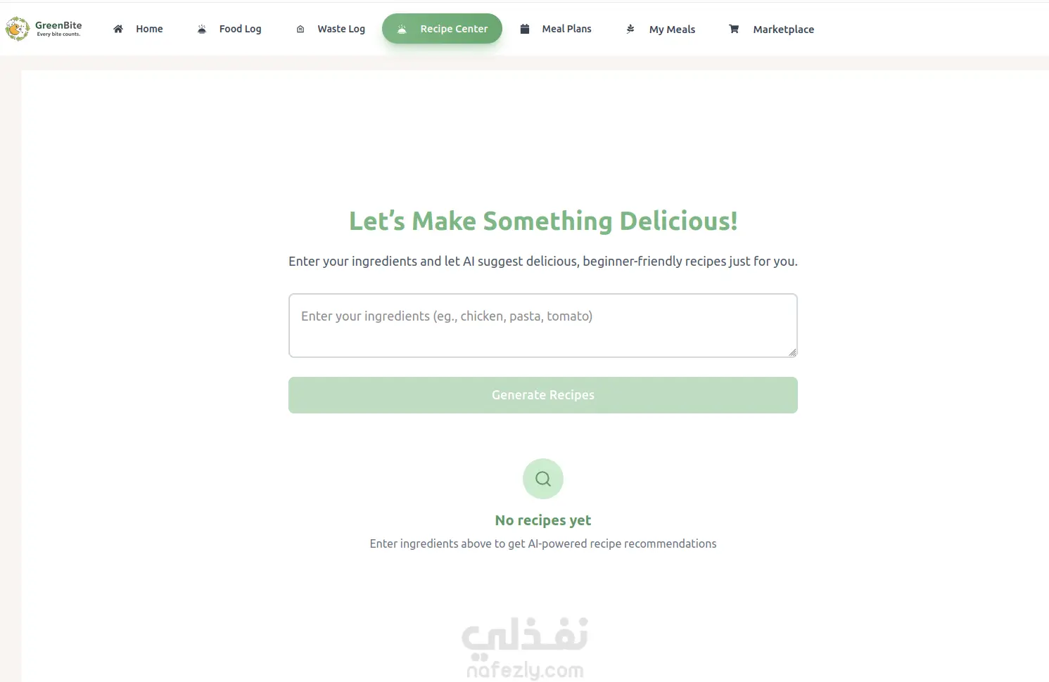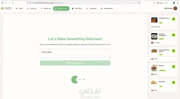 GreenBite is a smart sustainability platform that helps users: Track leftover and expiring food Get AI-based reuse recommendations Discover leftover-based recipes Measure their environmental impact Share or sell food in a local community