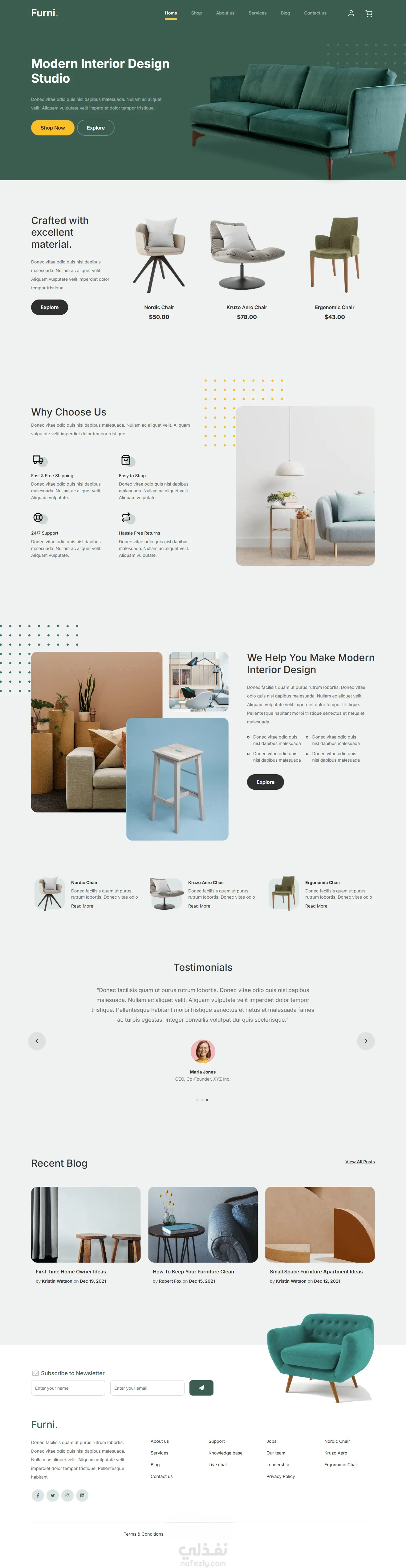 موقع إلكتروني متخصص في بيع الأثاث الحديث، يتميز بتصميم أنيق وواجهة مستخدم احترافية تضمن تجربة تسوق سهلة ومريحة للمستخدمين. يتيح الموقع تصفح المنتجات بسهولة، مع توفير ميزات مثل البحث المتقدم، تصنيفات المنتجات، وعرض تفاصيل شاملة لكل قطعة أثاث. مميزات الموقع: تصميم عصري . واجهة مستخدم سهلة الاستخدام تُسهل تجربة التسوق. إمكانية تصفح المنتجات حسب الفئات والتصنيفات. صفحة منتج تحتوي على صور عالية الجودة ووصف تفصيلي. قسم لتقييمات العملاء وآرائهم حول المنتجات. تحسين تجربة المستخدم من خلال سرعة الأداء والتنقل السلس. الموقع مصمم بأسلوب يعكس الهوية العصرية للأثاث ويمنح المستخدم تجربة فريدة تتناسب مع احتياجاته وذوقه.