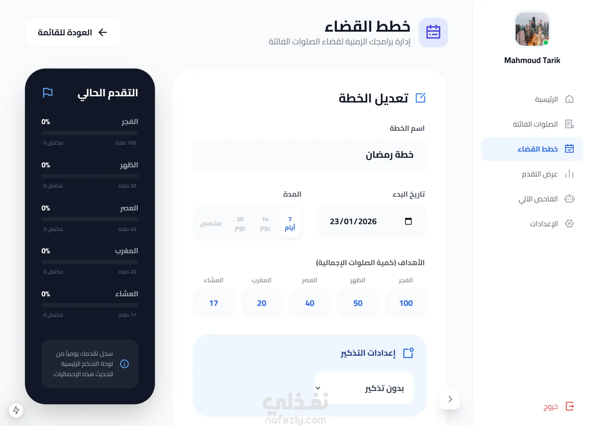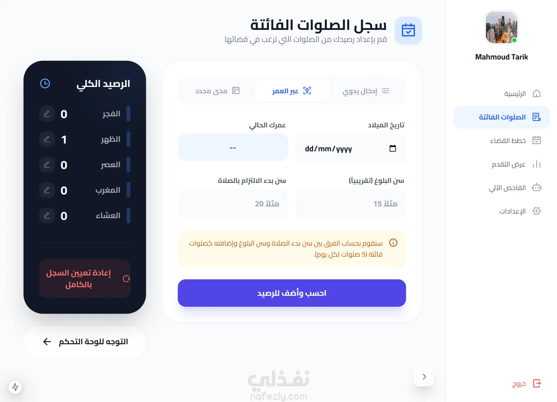 موقع PrayerQadaa: تطبيق ويب متكامل لتتبع الصلوات مدعوم بالذكاء الصناعي
