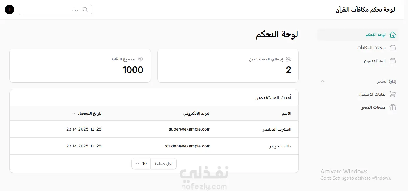 نظام النقاط والمتجر: تنفيذ متجر إلكتروني داخلي يتيح للطلاب استبدال نقاطهم بجوائز حقيقية، مع تحديث تلقائي للرصيد والمخزون.