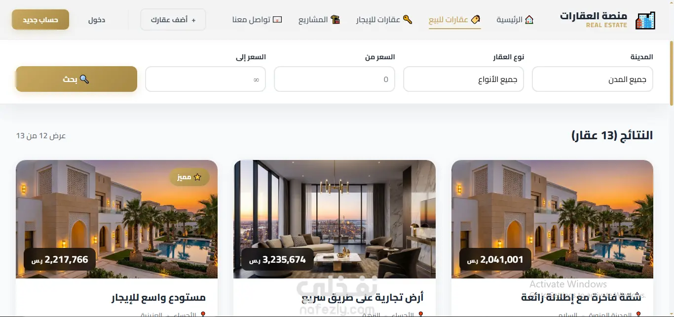 بحث وفلترة متقدمة: للعثور على العقار المناسب بدقة وسرعة.