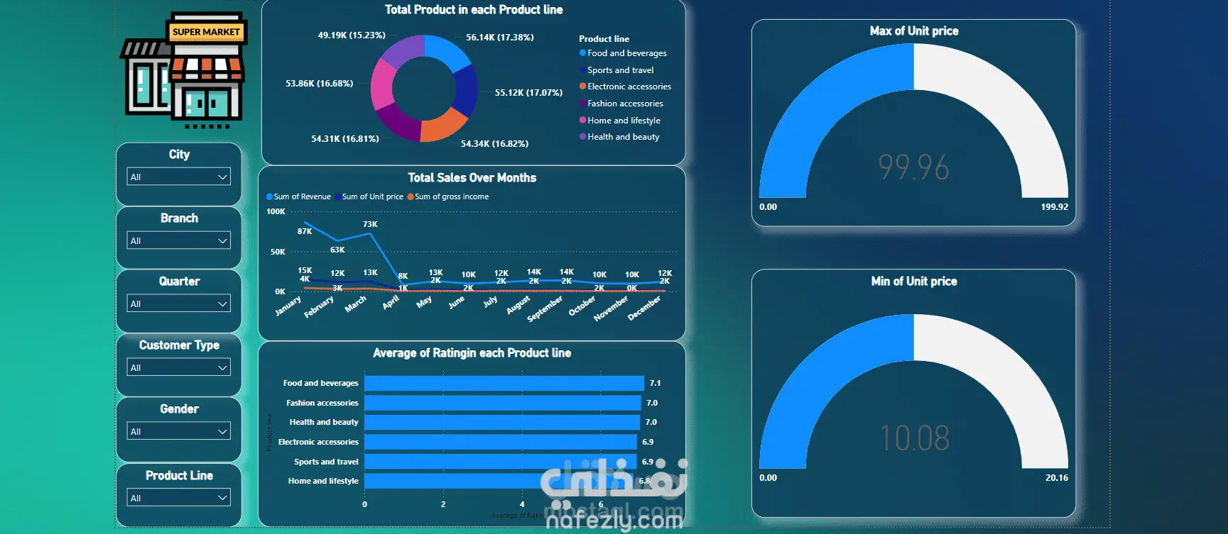 الميزات الرئيسية للوحة التحكم تشمل: 1- أداء المبيعات: تحليل المبيعات حسب الفئة، المنطقة، والفترات الزمنية، مع تسليط الضوء على المنتجات الأكثر مبيعًا. 2- إدارة المخزون: تتبع مستويات المخزون في الوقت الفعلي، مما يساعد في تحديد النقص أو الفائض في المخزون. 3- رؤى العملاء: تحليل مفصل للبيانات الديموغرافية للعملاء، أنماط الشراء، والتقسيمات بناءً على عادات الإنفاق. 4- تحليل الربحية: تصورات لهوامش الربح، مع تحديد المنتجات والمناطق التي تساهم أكثر في الربحية. 5- تحليل الاتجاهات: رؤى حول اتجاهات المبيعات مع مرور الوقت، بما في ذلك التأثيرات الموسمية وفترات الذروة في المبيعات. 6- تحليل سلة السوق: تحديد التركيبات المتكررة للمنتجات المشتراة، مفيد في تحسين استراتيجيات البيع المتقاطع. 7- أداء المناطق: تحليل مقارن لأداء مختلف مواقع المتاجر، مع عرض المناطق التي تحقق أفضل أداء من حيث المبيعات والمشاركة العملاء. 8- فاعلية العروض الترويجية: تقييم العروض الترويجية والخصومات، مع عرض تأثيرها على المبيعات وسلوك العملاء.