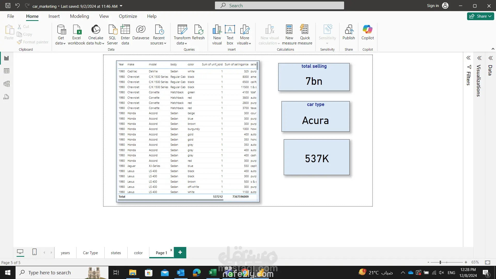 هذا المشروع عبارة عن لوحة تحكم تفاعلية باستخدام أدوات تحليل البيانات مثل Power BI لعرض وتحليل بيانات مبيعات السيارات. الهدف الرئيسي هو تمكين اتخاذ القرارات بناءً على البيانات وتحسين العمليات التجارية. يحتوي المشروع على ميزات ووظائف تحليلية تغطي مختلف الجوانب ذات الصلة بمبيعات السيارات. مكونات المشروع: تحليل العلامات التجارية: يتم استعراض بيانات مبيعات السيارات لكل علامة تجارية (مثل BMW، Toyota، وغيرها) من حيث العدد الإجمالي للسيارات المباعة، وإيراداتها الإجمالية. تحليل السعر الإجمالي بناءً على اللون والطراز الخاص بالعلامة التجارية. تحليل حسب الولايات والمناطق الجغرافية: توزيع المبيعات حسب الولايات باستخدام الخرائط التفاعلية. تحليل عدد السيارات المباعة وإيراداتها حسب المناطق الجغرافية. تحليل الألوان والطرازات: استعراض مبيعات السيارات حسب ألوانها المختلفة. تحليل تأثير اللون على الإيرادات وعدد المبيعات. مقارنة بين أداء الطرازات بناءً على ألوان السيارات. اتجاهات المبيعات بمرور الوقت: تتبع إجمالي الإيرادات وعدد السيارات المباعة على مدار السنوات. عرض اتجاهات المبيعات حسب السنة والربع السنوي لفهم الأنماط الزمنية. تفصيل المبيعات حسب الخصائص: عرض الإيرادات حسب ناقل الحركة (أوتوماتيكي أو يدوي). تحليل مبيعات كل طراز وعلامة تجارية داخل الولاية المحددة. الفوائد: تحسين القرارات التجارية بناءً على الأنماط والمقارنات المرفقة في التقارير. مساعدة الشركات في تحديد العلامات التجارية أو الألوان أو المناطق الأكثر ربحية. استخدام التحليل الجغرافي لتحديد مواقع المبيعات المستقبلية وتحسين التوزيع. مخرجات المشروع: لوحات تفاعلية توفر لمحة شاملة عن أداء المبيعات بناءً على بيانات متنوعة. تمثيل مرئي قوي لاتجاهات المبيعات، والمقارنات حسب العلامة التجارية، والألوان، والمناطق.