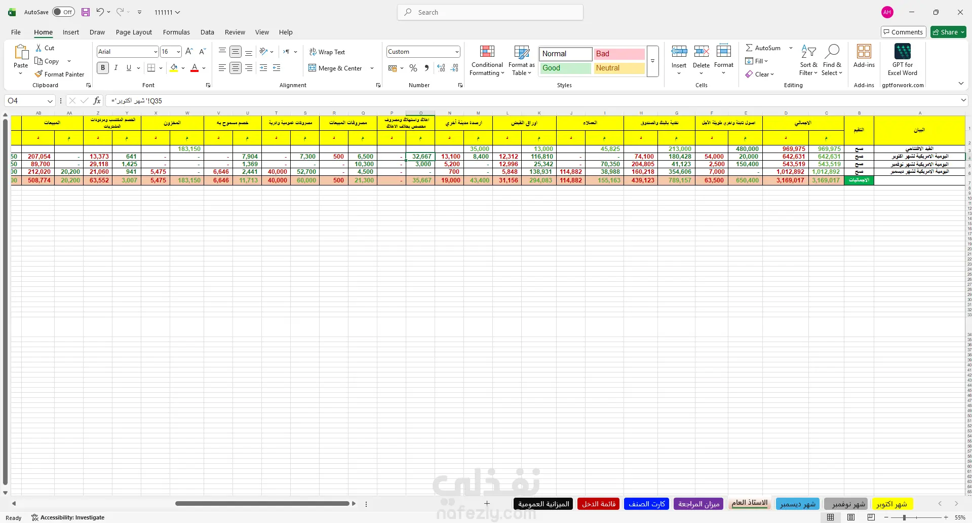 إعداد الأستاذ العام وميزان المراجعة باستخدام Excel