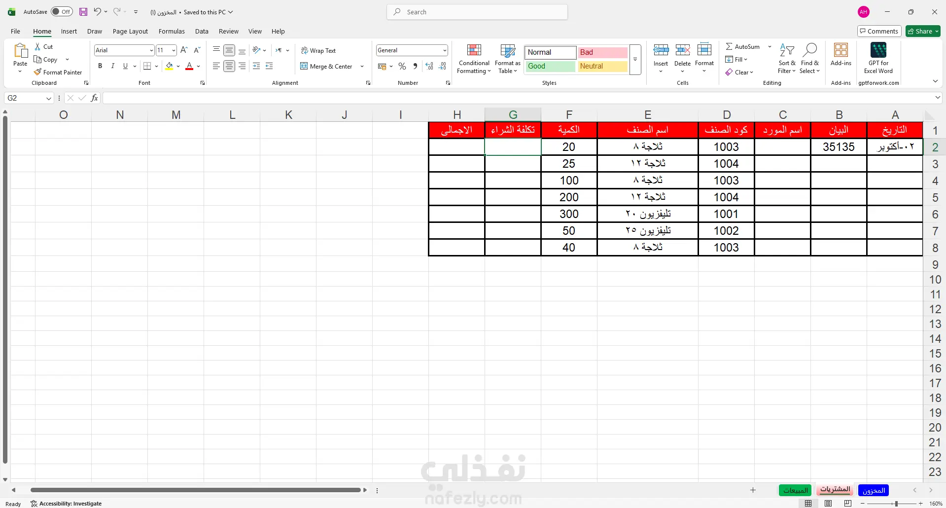 نموذج كارت صنف لمتابعة حركة المخزون (الوارد – المنصرف – الرصيد) باستخدام Excel، مناسب للشركات والمشروعات الصغيرة.
