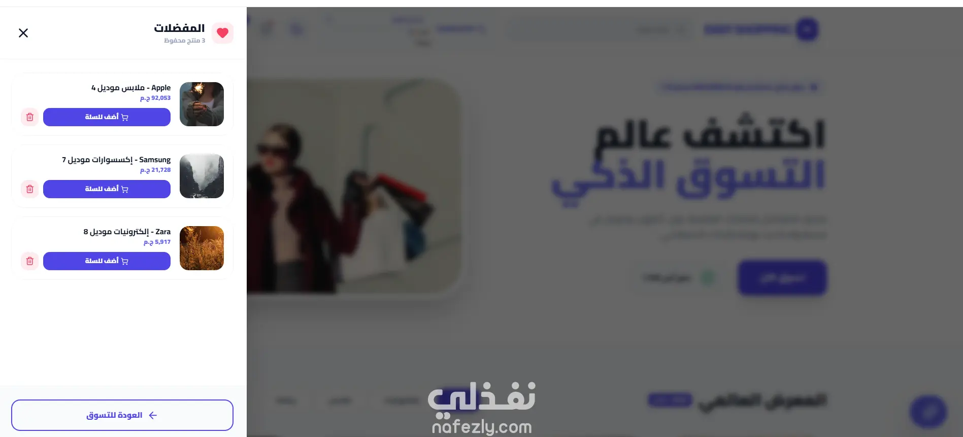 صفحة مفضلات لحفظ المنتجات المفضلة للمستخدمين