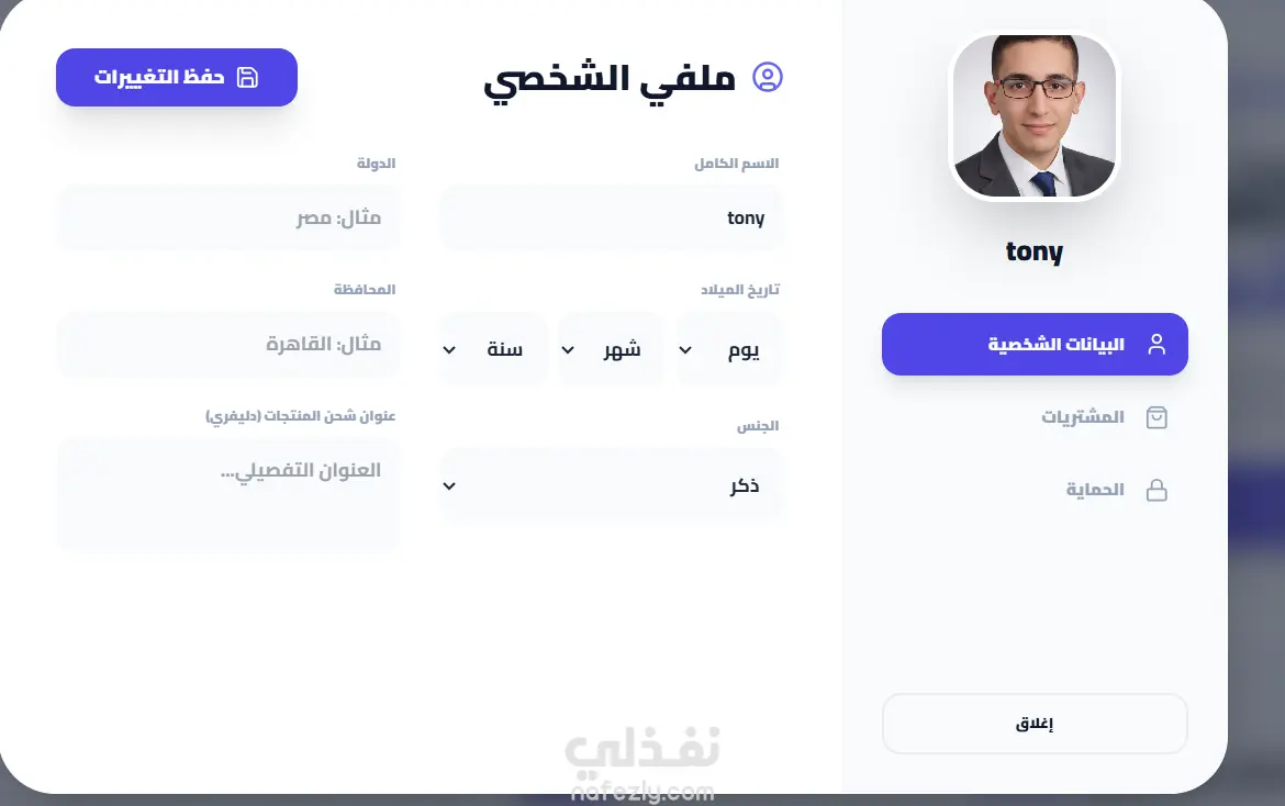 ملف شخصي متكامل لإدارة بيانات المستخدم والعناوين