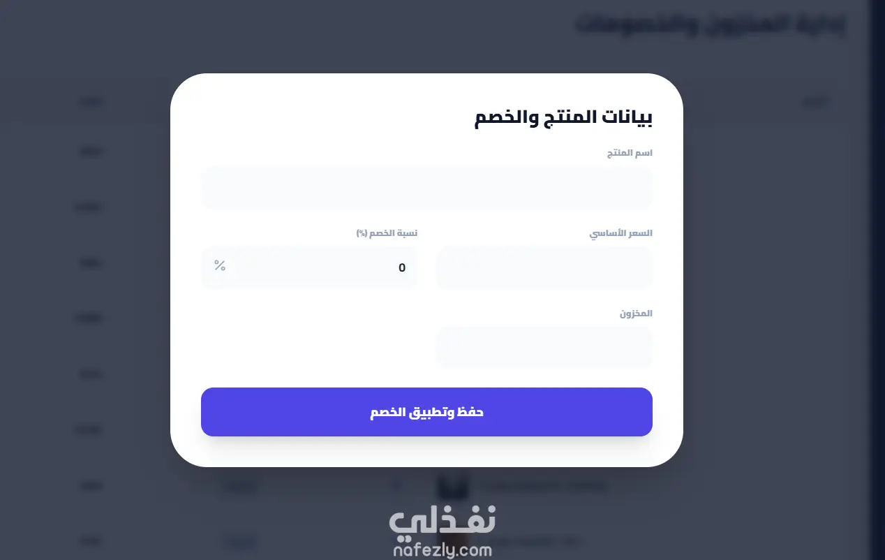 نظام خصومات: إدارة أكواد البرومو (EASY50، WELCOME10، 123TYGF) بأنواع مختلفة (نسبة مئوية، قيمة ثابتة)