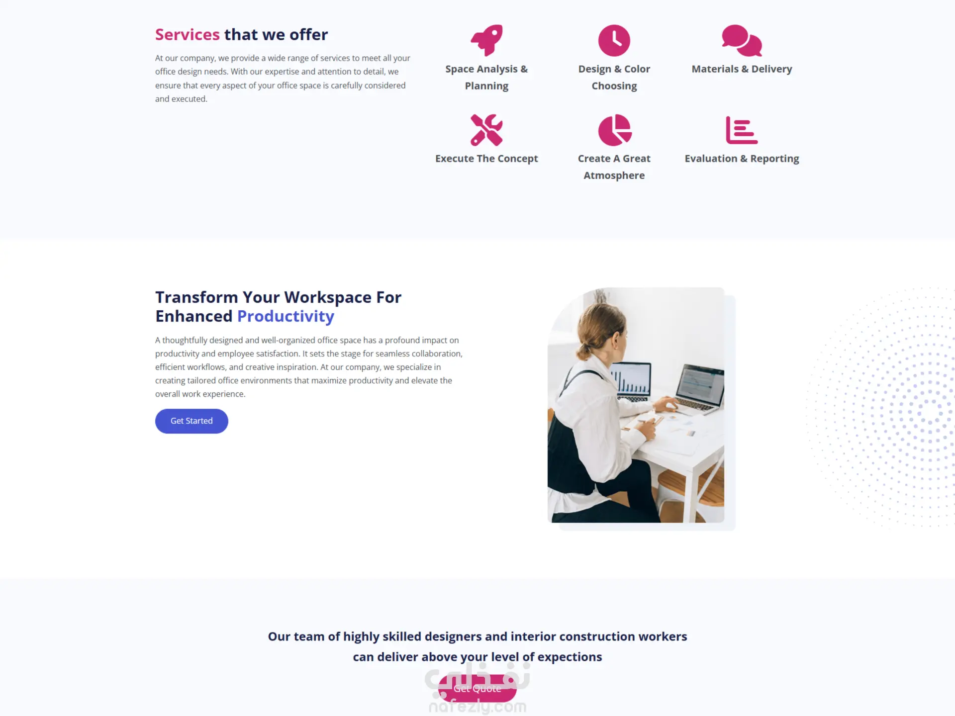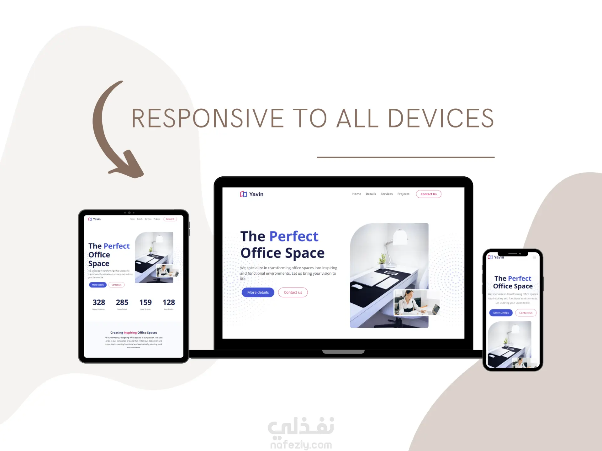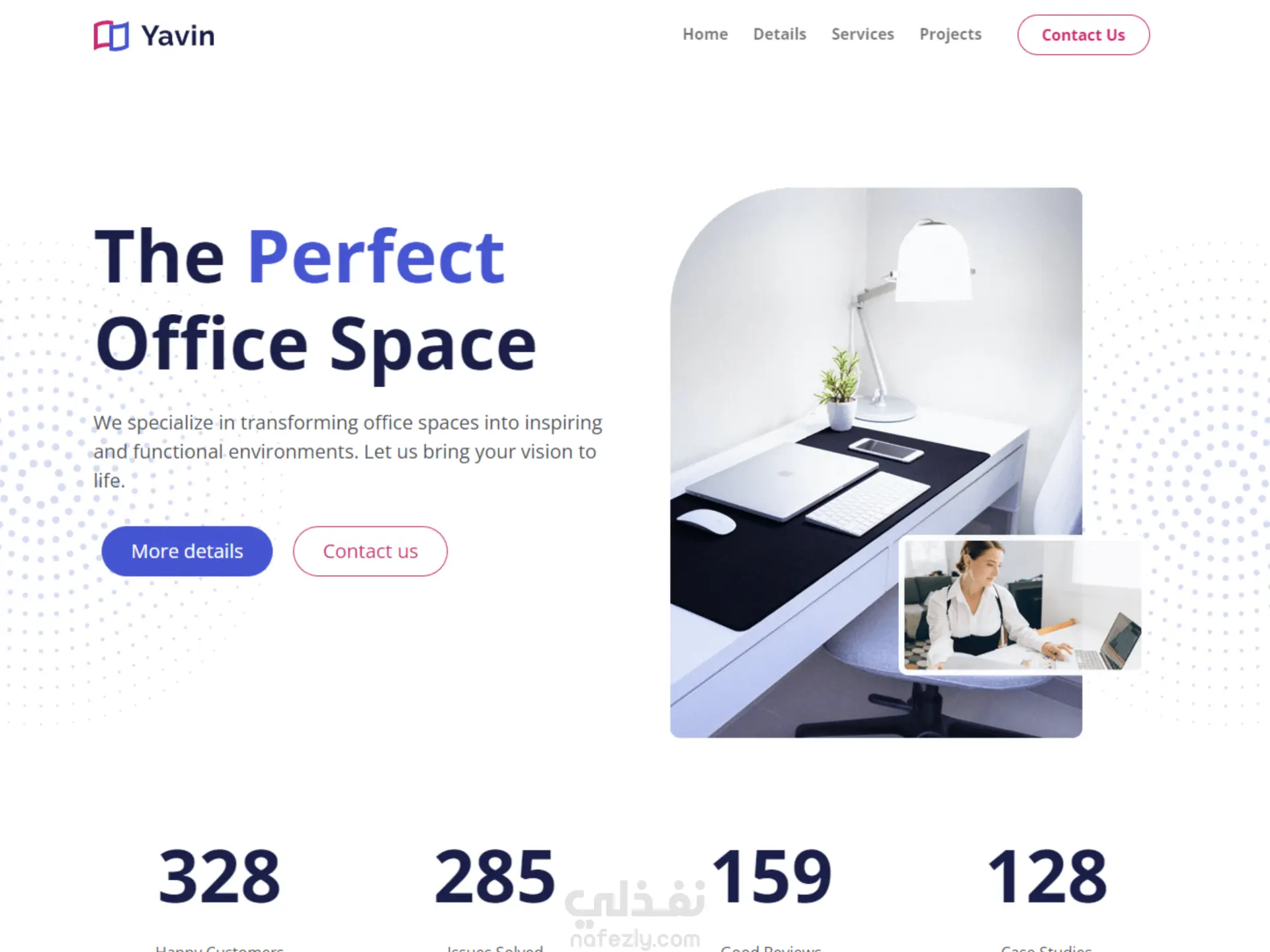 صفحة هبوط لشركة تنشء وتخصص مساحات مكتبية Yavin