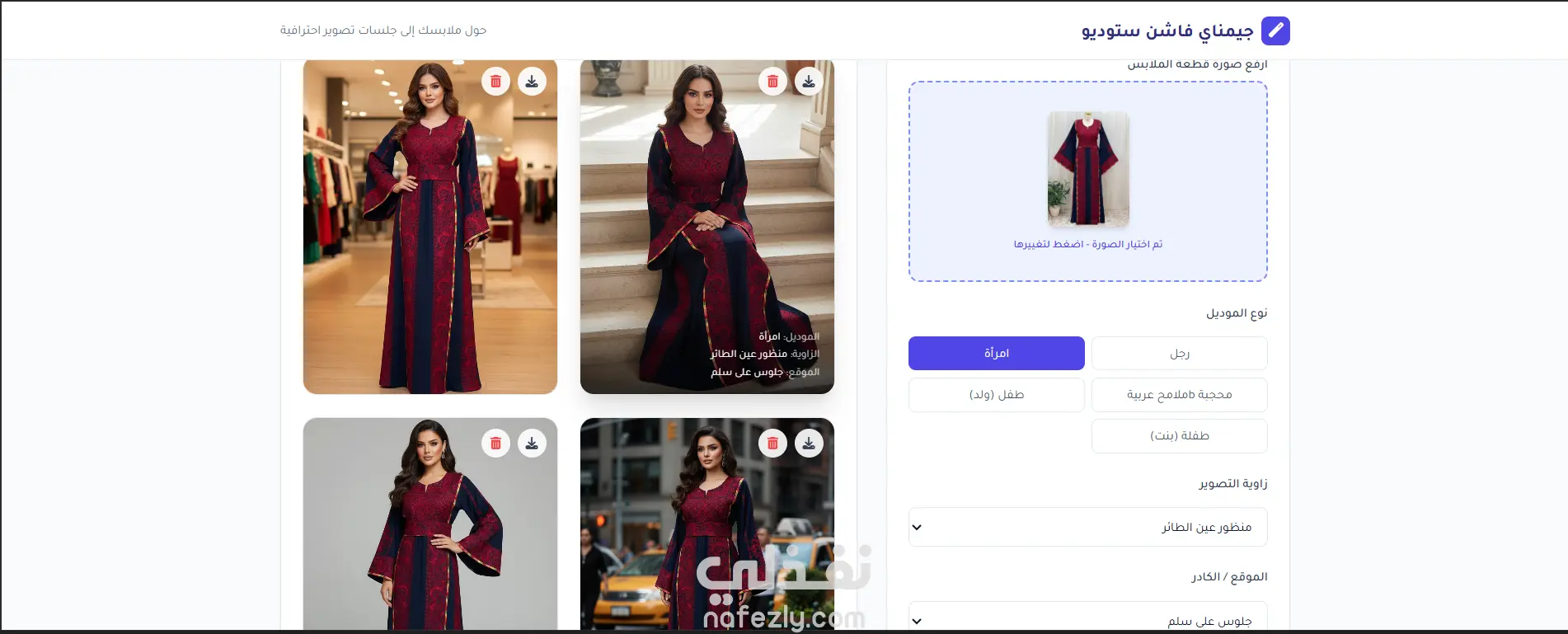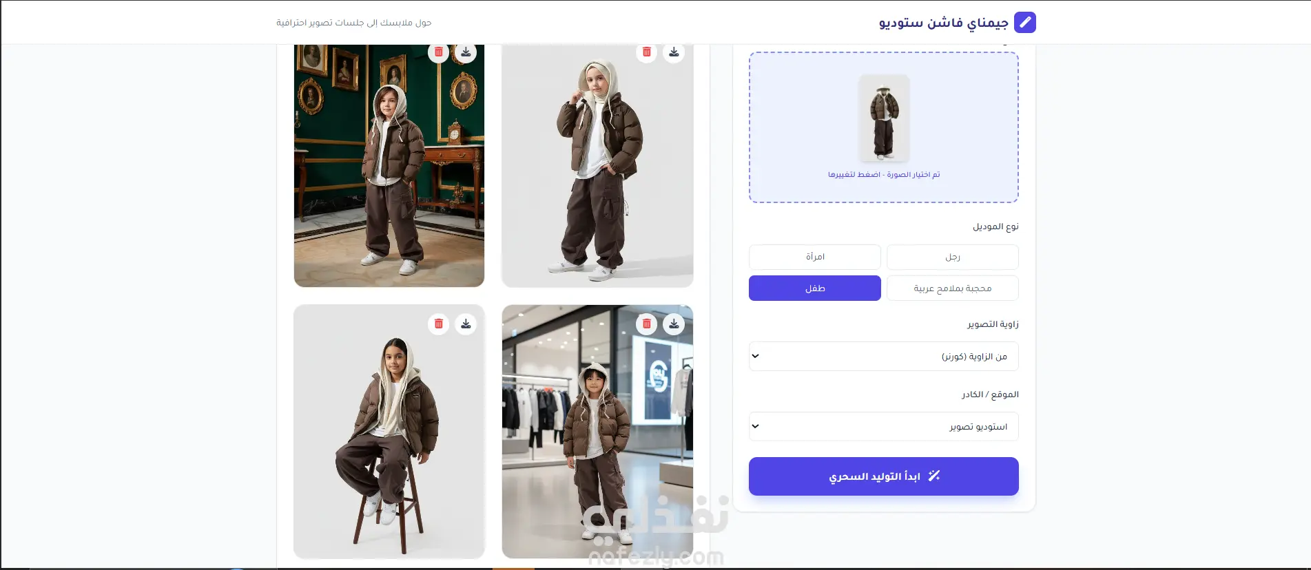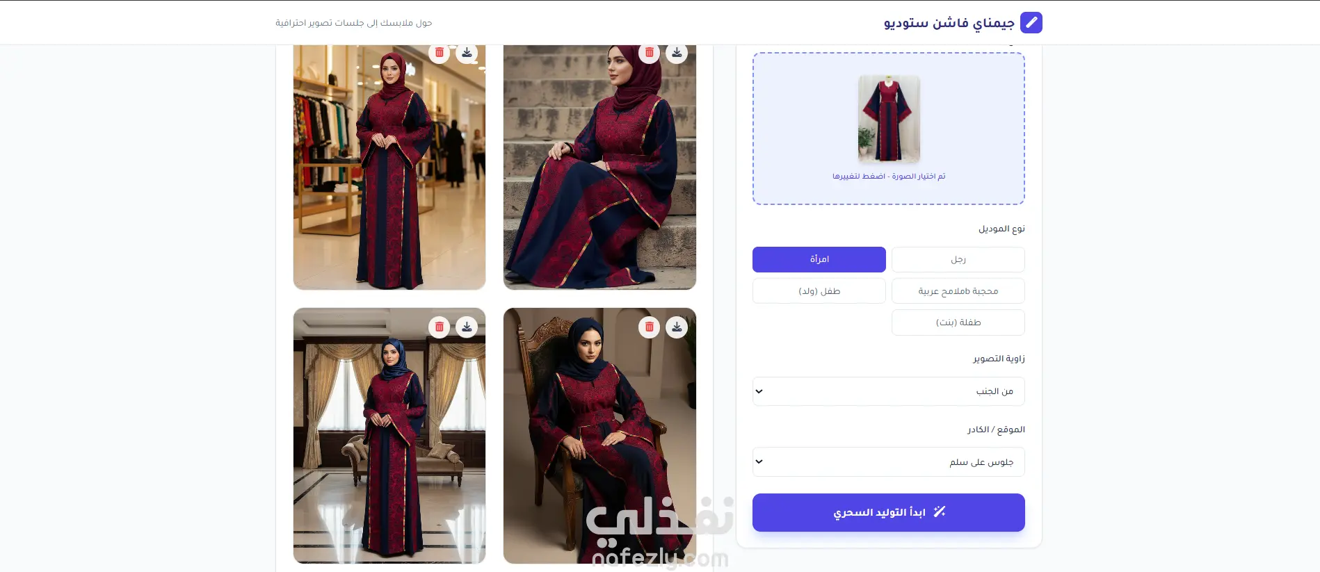 نقدّم لك حلًا ذكيًا ومبتكرًا لعرض منتجات الملابس بشكل احترافي دون الحاجة إلى جلسات تصوير مكلفة أو تنسيق مع موديلات ومصورين. من خلال نموذج ذكاء اصطناعي متطور، يمكنك تحويل أي قطعة ملابس إلى فوتو سيشن كامل يظهرها على موديل رجل أو امرأة أو طفل/طفلة بجودة عالية وتنوع بصري احترافي ينافس التصوير الواقعي. ✨ مميزات الخدمة: 👕 عرض الملابس على موديلات واقعية (رجال – نساء – أطفال) 📸 تنوّع غير محدود في الكادرات وزوايا التصوير 🌍 اختيار أكثر من بيئة تصوير (استوديو – كاجوال – خارجي – فاخر…) 🔄 إمكانية التعديل والتجربة حتى الوصول لأفضل نتيجة 🖼️ صور بجودة 2K وبمقاس مثالي 4:5 مناسب للسوشيال ميديا والمتاجر الإلكترونية ♾️ إنشاء عدد لا نهائي من الصور لمنتج واحد ⏱️ توفير هائل في الوقت بدل انتظار جلسات التصوير 💰 تقليل التكاليف مقارنة بالتصوير التقليدي 🔗 طريقة التسليم: تسليم رابط الأداة للاستخدام من أي جهاز وفي أي وقت تسليم ملف الأداة كامل في حال رغبتك برفعها على دومين خاص بك، لتكون الأداة حصرية باسمك وبراندك 🎯 لمن هذه الخدمة؟ تجار الملابس أصحاب المتاجر الإلكترونية براندات الأزياء مسوقين ومنشئي محتوى الموضة