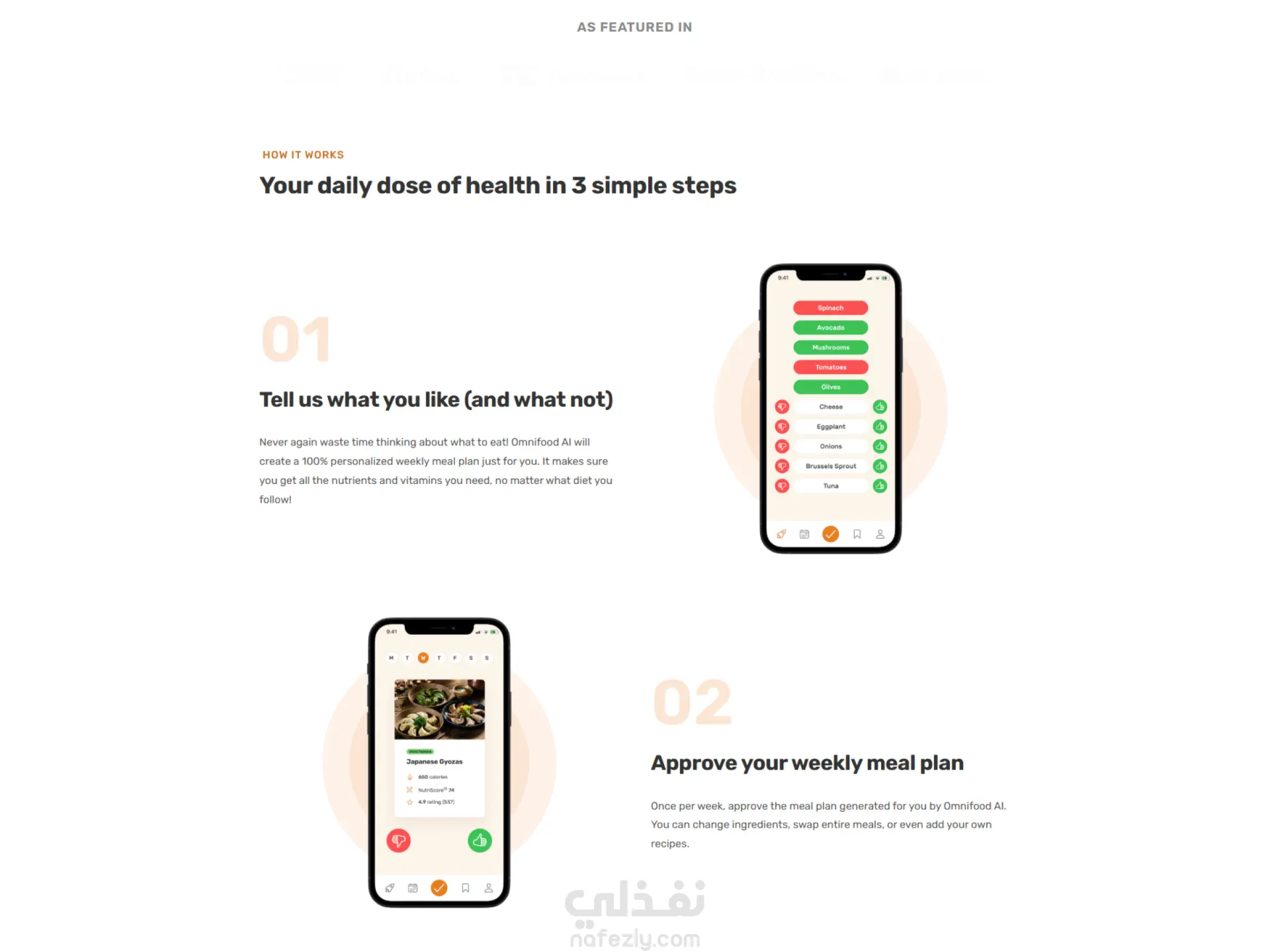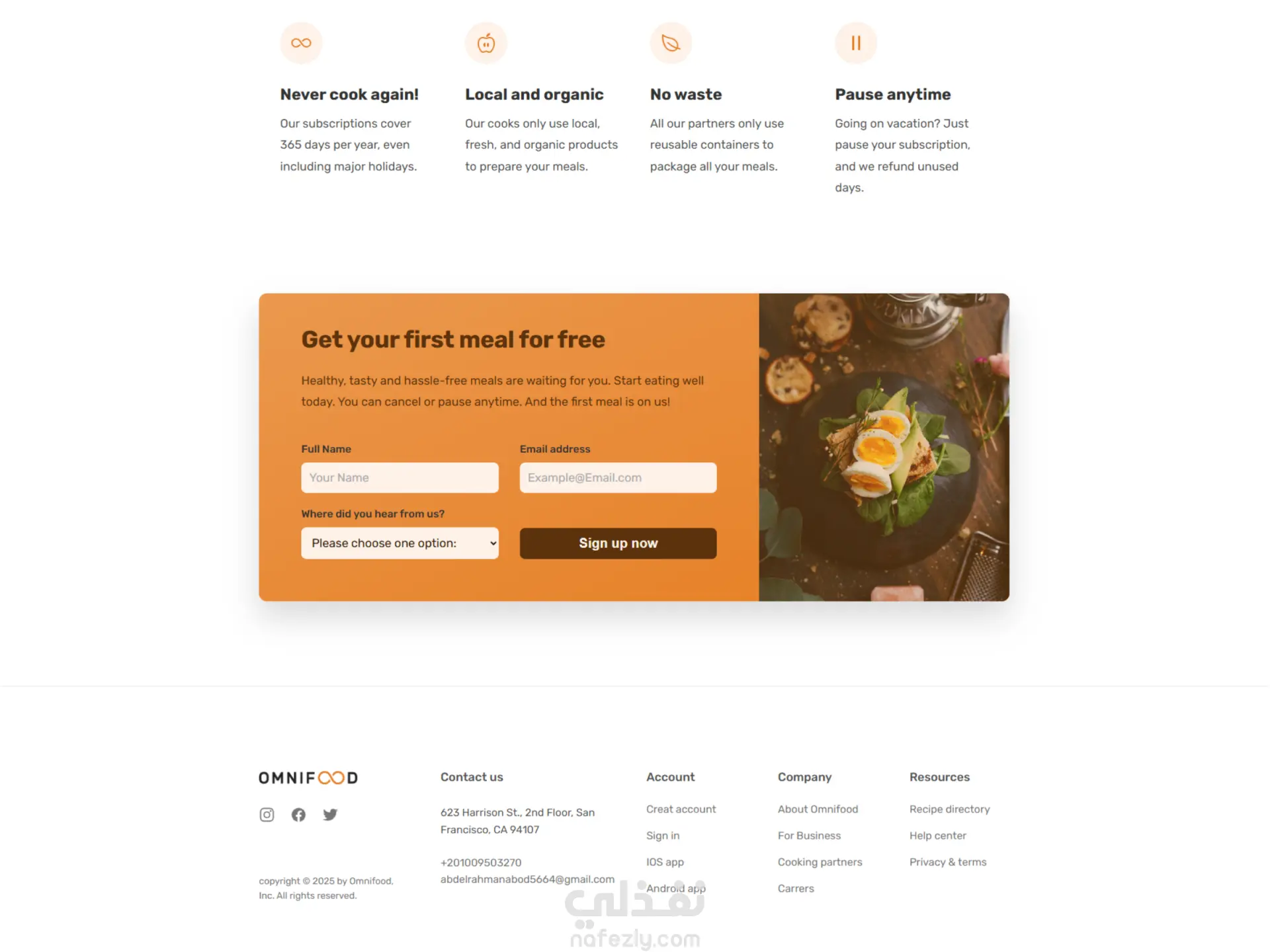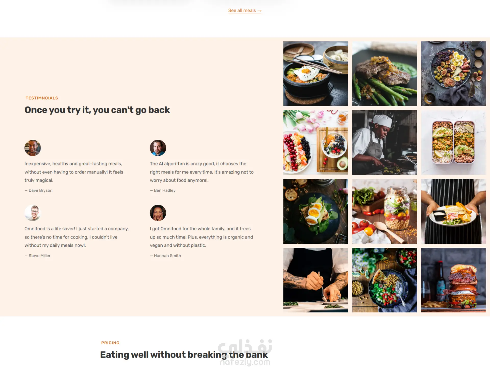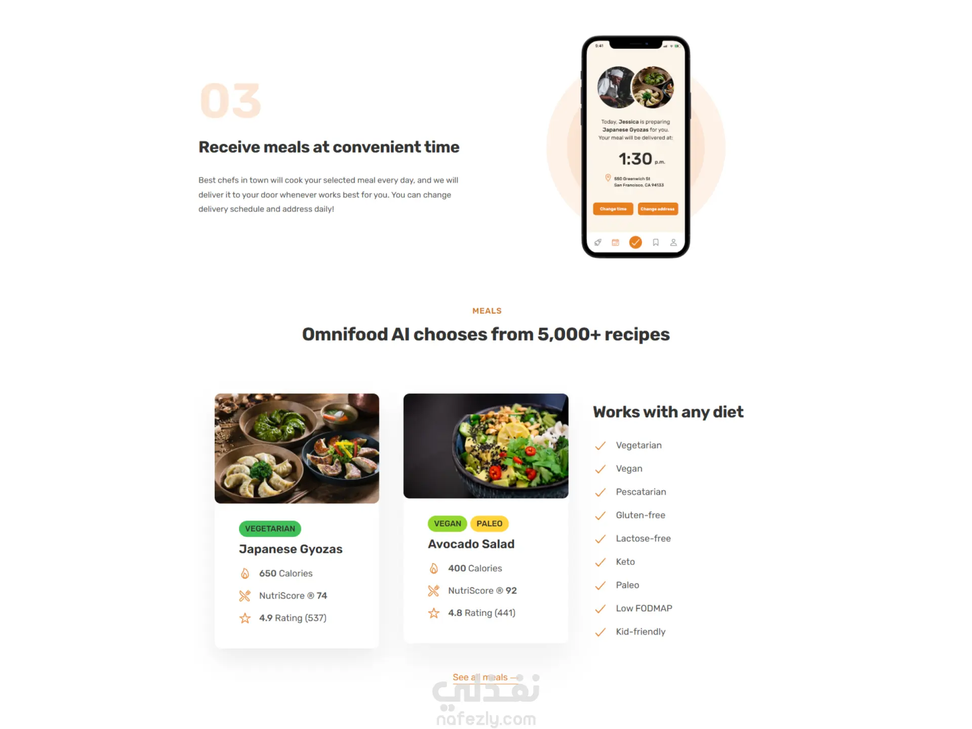 Omnifood موقع إلكتروني متجاوب يقدم خطط وجبات مدعومة بالذكاء الاصطناعي، وخدمة توصيل مرنة، وأكثر من 5000 وصفة صحية. مشاهدة الموقع : https://omni-foodv2.netlify.app GitHub: https://github.com/abod564/Omnifood الميزات خطط وجبات مخصصة - وجبات صحية. تخطيط مدعم بالذكاء الاصطناعي - اقتراحات لوجبات أسبوعية مع إمكانية تخصيص . مرونة وتحكم و تعديل الوجبات، إدارة التوصيل، أو إيقاف التوصيل مؤقتًا في أي وقت. مكونات طازجة وعضوية وعبوات صديقة للبيئة.