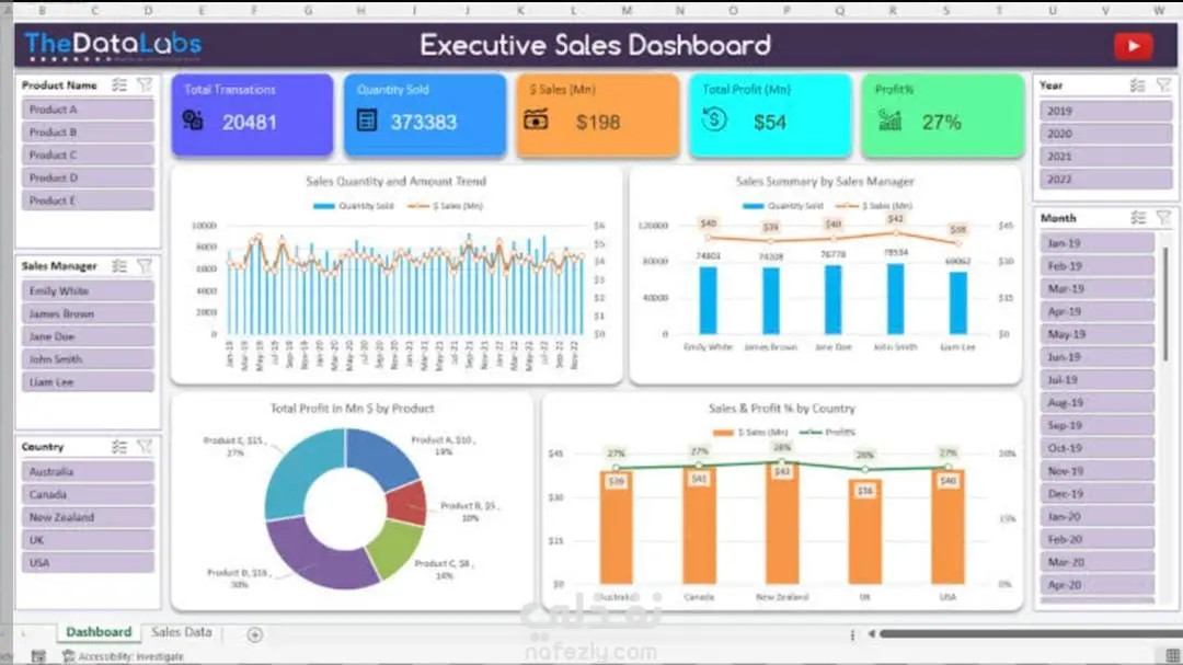قمت بتحويل بيانات مبيعات خام لأكثر من 1000 عملية بيع إلى لوحة تحكم تفاعلية توضح (أكثر المنتجات مبيعاً، المناطق الأعلى ربحية، ونسبة النمو الشهري).