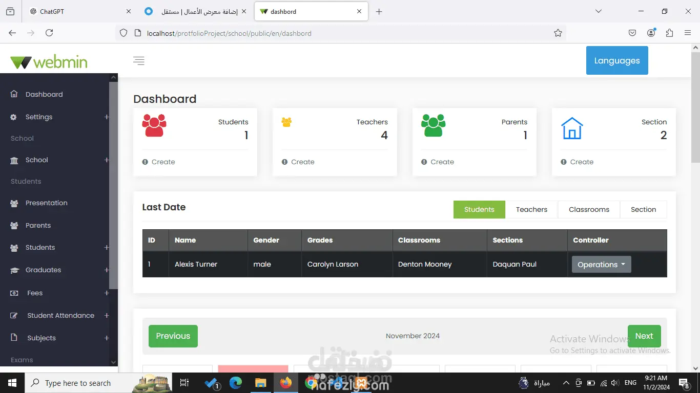 قمت بتطوير موقع إلكتروني متكامل لإدارة العملية التعليمية في المدارس، يشمل النظام العديد من الأدوات التي تسهم في تحسين تجربة التعلم والمتابعة لجميع الأطراف المعنية، مثل الطلاب، والمدرسين، وأولياء الأمور. النظام مُصمم بشكل شامل وسهل الاستخدام ويحتوي على واجهة مستخدم سلسة، تم تطويرها باستخدام HTML، وCSS، وJavaScript، وTailwind CSS، وتقنيات حديثة مثل Livewire وPHP Laravel لضمان أداء واستجابة عالية. يوفر النظام ميزات متعددة، منها: متابعة الطلاب: يقدم لوحة تحكم مفصلة تتيح للمدرسين وأولياء الأمور متابعة مستوى أداء الطلاب وتطورهم الدراسي، من خلال عرض سجلات الدرجات والواجبات والأنشطة التعليمية. إدارة المدرسين: يمكن للإدارة متابعة المدرسين وتوزيع المهام والجداول الدراسية، مع إمكانية تتبع أدائهم وتقييمهم. إشراك أولياء الأمور: يوفر الموقع وسيلة تواصل مباشرة مع أولياء الأمور، حيث يمكنهم الاطلاع على تقدم أبنائهم الأكاديمي، وإرسال التنبيهات والإشعارات حول الأنشطة والاختبارات القادمة. إدارة الاختبارات: يحتوي النظام على قسم مخصص لإدارة الاختبارات وإضافة أسئلة وتقييمها، ما يوفر الوقت والجهد ويضمن دقة التقييم. إدارة المدفوعات: يسهل النظام عمليات الدفع من خلال توفير سجل المدفوعات لكل طالب، مع إمكانية إرسال تنبيهات لأولياء الأمور حول المستحقات وتواريخ الدفع. إدارة الحضور والغياب: يمكن متابعة حضور الطلاب بشكل يومي، سواء كانوا حاضرين فعلياً أو عبر خاصية الحضور أونلاين، التي تسمح للمدرسين بتسجيل الحضور والغياب بشكل رقمي. خاصية الحضور أونلاين: تم تطوير هذه الخاصية للسماح بمتابعة الطلاب عن بعد، ما يجعل الموقع مناسبًا أيضًا للتعلم عبر الإنترنت ويسهم في توفير بيئة تعليمية مرنة. النظام يتميز بالأمان والموثوقية، حيث تم تطويره باستخدام أحدث تقنيات الأمان لضمان حماية البيانات الحساسة للطلاب والمدرسين وأولياء الأمور.