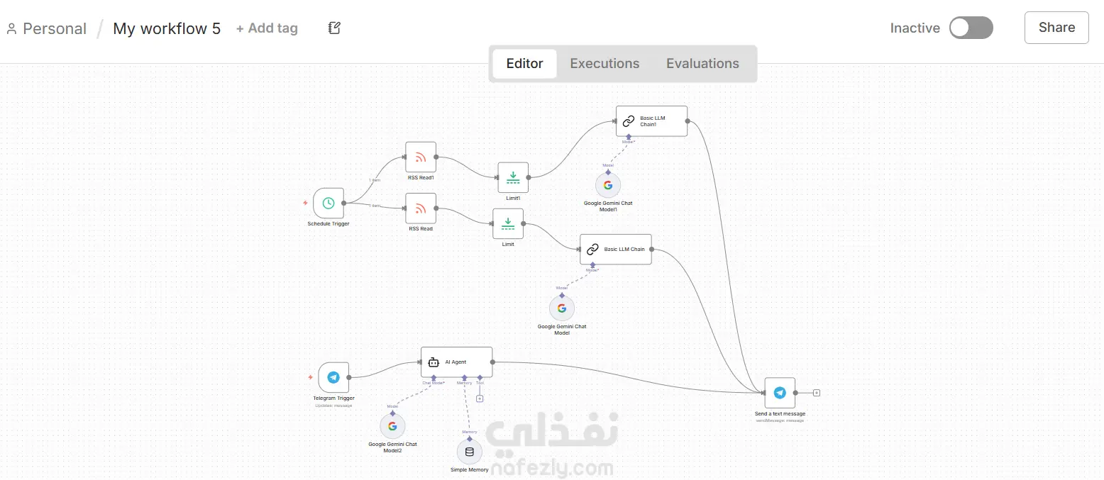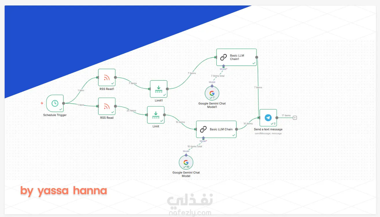 أقدم لك نظاماً تقنياً متكاملاً يجمع بين أفضل عالمين: أتمتة العمليات التجارية والذكاء الاصطناعي التطبيقي. هذا ليس مجرد خدمة، بل هو شراكة تقنية تحول عملك بالكامل إلى نظام ذكي يعمل تلقائياً ويفكر استباقياً. المكونان الرئيسيان للنظام المتكامل الجزء الأول: محرك الأتمتة الذكي للمتاجر الإلكترونية تكامل مع جميع منصات التجارة الإلكترونية (Shopify، Zid، OpenCart، Magento) مزامنة تلقائية للمنتجات والطلبات والمخزون ربط مباشر مع Google Sheets وقواعد البيانات تحديث فوري للبيانات دون تدخل يدوي الجزء الثاني: منظومة الذكاء الاصطناعي التفاعلية تكامل مع نماذج الذكاء الاصطناعي المتقدمة (OpenAI GPT، Google Gemini) بناء سلاسل معالجة لغوية ذكية (LLM Chains) روبوت محادثة متعدد المهام على Telegram وغيره تحليل ذكي للبيانات واتخاذ قرارات مساعدة كيف يعمل النظام المتكامل معاً؟ سيناريو التشغيل المتكامل: مرحلة الجمع والتنظيم يجلب النظام الطلبات الجديدة من متجرك على Zid تلقائياً يسحب بيانات المنتجات من Shopify في نفس الوقت ينظم كل المعلومات في جداول Google Sheets المخصصة مرحلة التحليل الذكي يمرر بيانات المبيعات إلى نموذج الذكاء الاصطناعي يحلل أنماط الشراء والعملاء الأكثر نشاطاً يكتشف الفرص والتحديات في أداء المتجر مرحلة التفعيل والتفاعل يرسل البوت الذكي على Telegram تقريراً تحليلياً يومياً يقترح إجراءات تحسين بناءً على التحليل يرد على استفسارات العملاء تلقائياً بالمعلومات الدقيقة ينبه لإعادة ترتيب المخزون بناءً على معدلات البيع مرحلة التحسين المستمر يراقب أداء المتاجر المنافسة عبر RSS يحلل تغيرات السوق باستخدام الذكاء الاصطناعي يقترح تعديلات في التسعير أو العروض يطور نفسه بناءً على النتائج السابقة المزايا الفريدة للتكامل أتمتة ذكية وليست آلية فقط النظام لا ينقل البيانات فحسب، بل يحللها ويفهمها يتخذ إجراءات ذكية بناءً على السياق يتعلم من النتائج السابقة لتحسين أدائه اتصال حيوي بين جميع أجزاء العمل ربط مباشر بين المبيعات والتسويق والمخزون تكامل سلس بين خدمة العملاء والمبيعات اتصال مباشر بين البيانات والقرارات الإدارية مرونة غير محدودة قابل للتطوير مع نمو أعمالك قابل للتكيف مع منصات جديدة قابل للتخصيص حسب احتياجاتك المتغيرة التطبيقات العملية للنظام المتكامل لصاحب المتجر الإلكتروني: إدارة مخزون ذكية تتوقع الطلب المستقبلي تسعير ديناميكي بناءً على تحليل السوق والمنافسة خدمة عملاء على مدار الساعة ترد على الاستفسارات تقارير تحليلية تفصيلية تساعد في اتخاذ القرارات للمسوق الرقمي: تحليل أداء الحملات التسويقية تلقائياً اكتشاف فرص تسويقية جديدة من بيانات المبيعات أتمتة إرسل العروض الترويجية للعملاء المناسبين متابعة ردود فعل العملاء وتحليلها للمدير التنفيذي: لوحة تحكم شاملة تعرض جميع مؤشرات الأداء تنبيهات ذكية للمشكلات قبل تفاقمها تحليلات استراتيجية تساعد في التخطيط المستقبلي تتبع تحقيق الأهداف بشكل آني ما الذي يميز هذا النظام عن غيره؟ 1. التكامل الشامل لا تحتاج لشراء عدة أنظمة منفصلة، هذا نظام واحد يدير كل شيء. 2. الذكاء الحقيقي النظام لا ينفذ أوامر فقط، بل يفهم ويحلل ويقترح. 3. التحديث المستمر يتطور النظام مع تطور تقنيات الذكاء الاصطناعي.