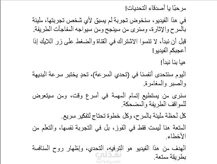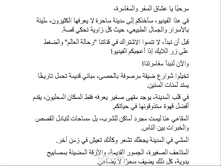خدمة كتابة سكربتات مشوّقة هل تبحث عن سكربت يجذب المشاهد من أول ثانية ويجعله يكمل الفيديو؟ في هذه الخدمة أقدّم لك سكربت احترافي بأسلوب سردي مشوّق وتسلسل ذكي للأفكار، جاهز للتسجيل ويزيد التفاعل ويشد الجمهور. ماذا ستحصل عليه؟ كتابة سكربت احترافي حسب المجال (جرائم وغموض – قصص وعِبر – سفر وسياحة – ثقافة – تحديات)، مقدمة قوية تشد الانتباه، تنظيم أفكار مشوّقة، تدقيق لغوي كامل، طول مناسب لفيديو قصير (~500 كلمة) مقابل سعر الخدمة. لماذا تختار الخدمة؟ - نص جاهز للتسجيل - تركيز على التشويق - أسلوب مناسب لليوتيوب والريلز - التزام بالجودة والوقت أرسل الفكرة أو العنوان، وسأحوّلها إلى سكربت جذّاب يناسب قناتك. ملاحظات: يمكن تخصيص الأسلوب حسب نوع القناة أو زيادة عدد الكلمات حسب التطويرات.