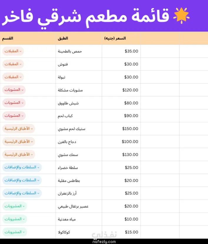 تصميم منيو فاخر ومتكامل لمطعم عربي – مشروع تجريبي