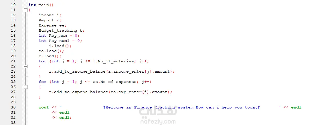 قم ببرمجة تطبيق متكامل لإدارة الشؤون المالية الشخصية باستخدام لغة C++، يعمل من خلال واجهة الأوامر البرمجية (Console Interface). يهدف المشروع إلى تمكين المستخدمين من تتبع دخلهم ومصاريفهم بدقة، مع نظام تنبيهات ذكي للميزانيات لضمان تحقيق الاستقرار المالي. الميزات التقنية والوظيفية للمشروع: إدارة الدخل والمصاريف: إمكانية إضافة، تحديث، وحذف سجلات الدخل والمصاريف مع تصنيفها حسب المصدر أو الفئة التاريخية. نظام تتبع الميزانيات: تحديد سقف إنفاق لكل فئة (Budgets) مع مراقبة الاستهلاك اللحظي. نظام التنبيهات الذكي: يقوم النظام بإصدار تحذيرات تلقائية للمستخدم عند اقتراب المصاريف من 90% من الميزانية المحددة أو تجاوزها. تقارير مالية تفصيلية: توليد تقارير ملخصة للرصيد الإجمالي (Income, Expense, Net Balance) بالإضافة إلى تقارير تفصيلية مفلترة حسب فئات الإنفاق. استمرارية البيانات (Data Persistence): ميزة حفظ كافة البيانات في ملفات نصية خارجية (.txt) واستعادتها تلقائياً عند تشغيل النظام لضمان عدم فقدان المعلومات