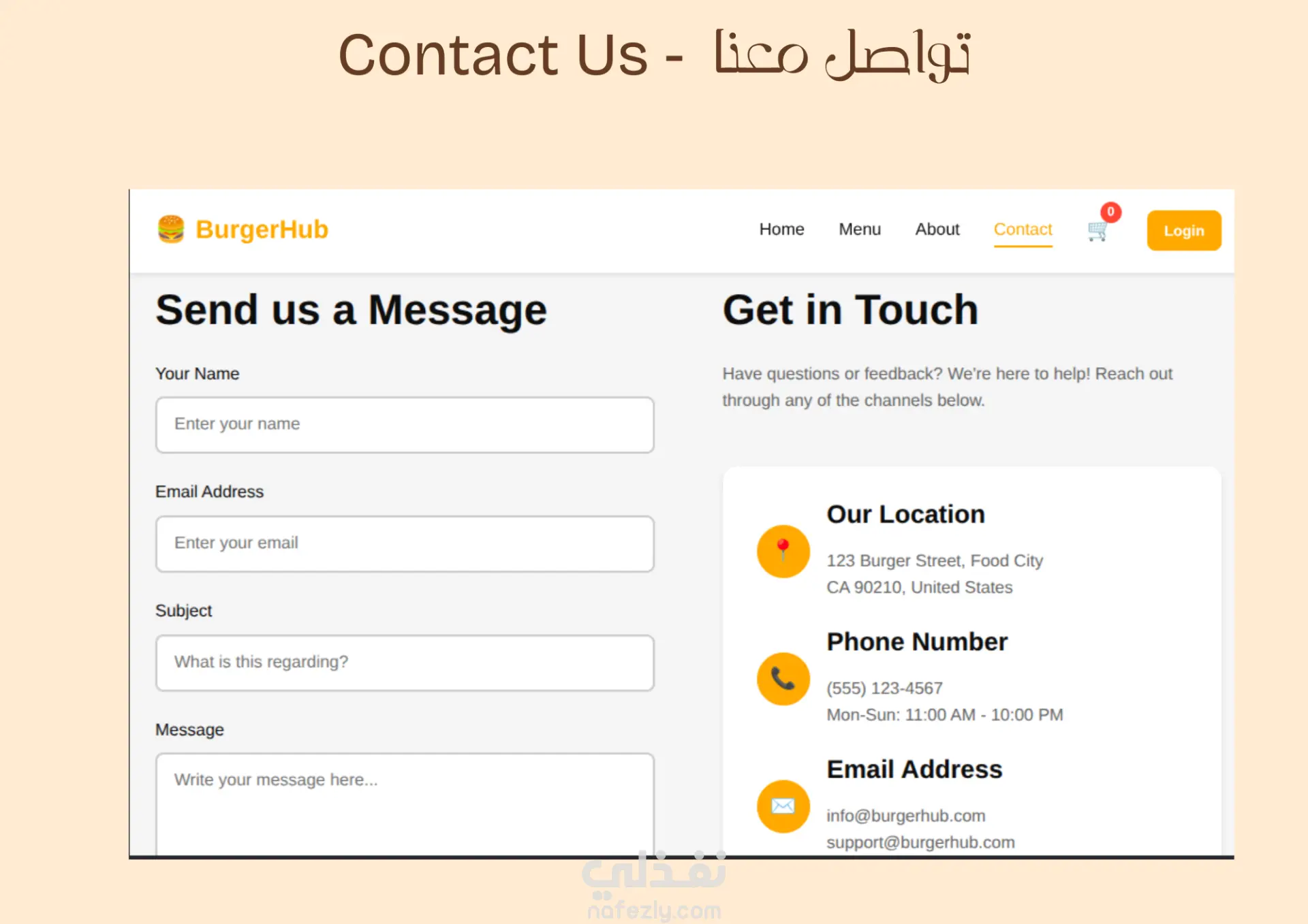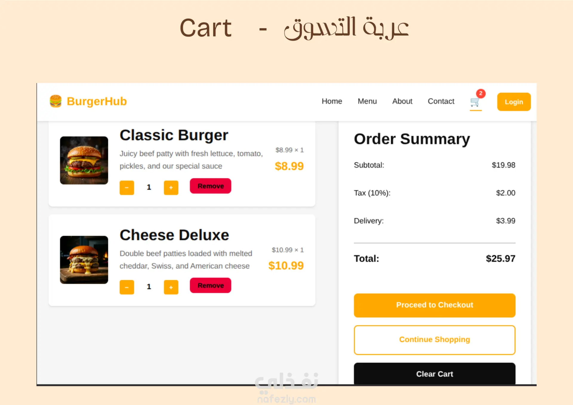 هذا مشروع واجهة متجر Front-End مخصص لبيع البرجر تم تطويره باستخدام أحدث معايير HTML, CSS, وJavaScript، مع تركيز قوي على التجاوب (Responsive) لتقديم تجربة مستخدم سلسة على الأجهزة المختلفة من موبايل وتابلت إلى سطح المكتب.