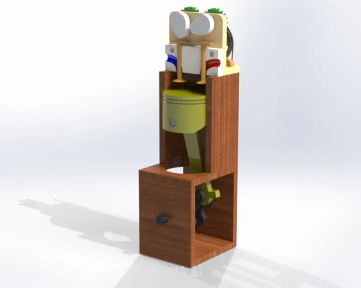 تصميم ميكانزم محرك الاحتراق سبايدر كرانك مع استخدام تروس وكامات لتحقيق فتح وغلق الصمام وتنفيذه بالخشب والطباعة ثلاثية الأبعاد